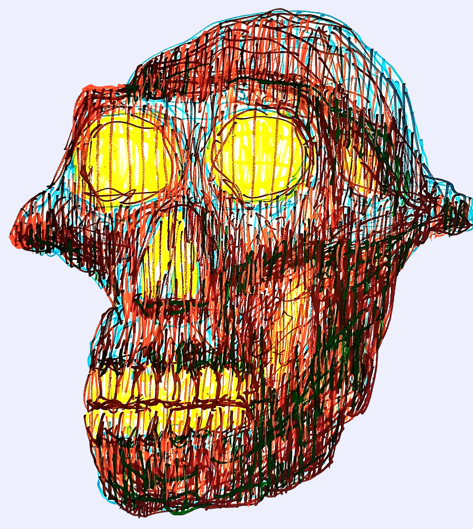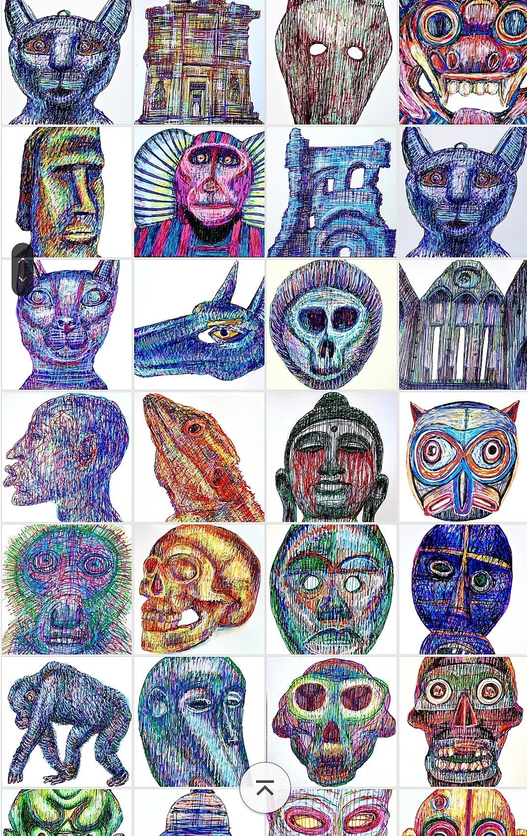 In this series, you will find an eclectic mix of subjects-from the primal energy of a roaring animal to the whimsical charm of a rooster in sunglasses or a perfectly rendered fried egg. Many of these pieces utilize a dense, multi-layered “cross-hatching” technique, creating a tactile sense of depth and movement on the page. Whether it is a surreal tribal mask, a focused study of a human eye, or the organic curves of a turtle shell, each work is a celebration of spontaneity and graphic precision.
