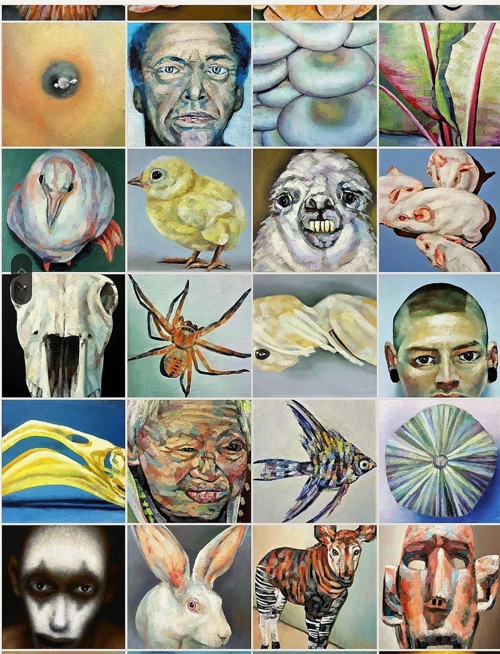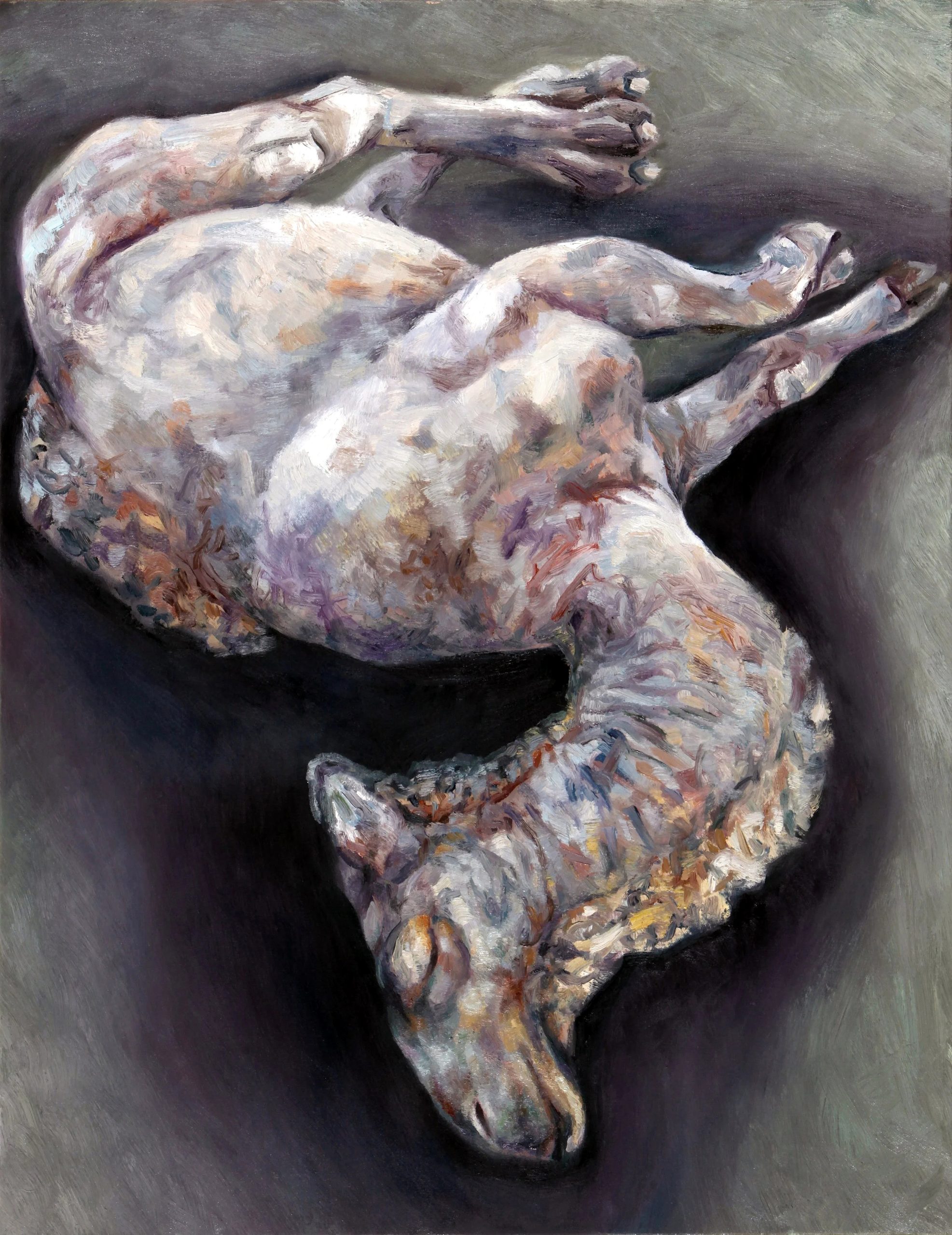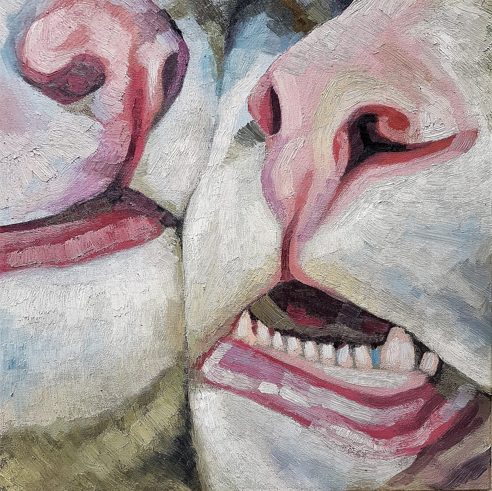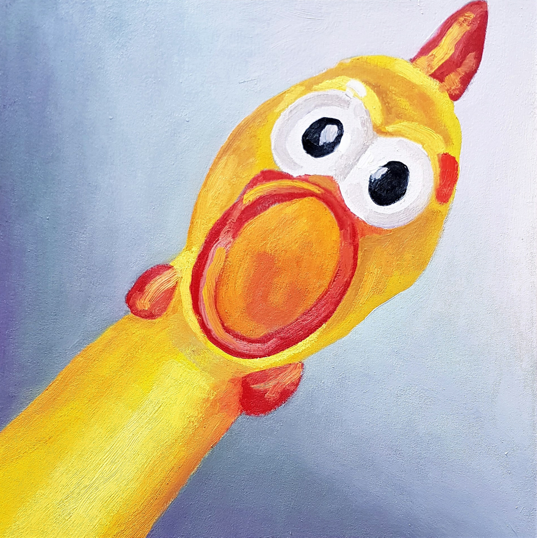 In this series, you will find an eclectic mix of visual explorations: the soft, luminous fur of a white rabbit, the intricate and weathered texture of teeth, the organic symmetry of a grapefruit, and the whimsical energy of a rubber chicken. Each work is a study in light, shadow, and color, utilizing bold brushstrokes and layered glazes to create a sense of life and presence. These paintings challenge the viewer to find wonder in the everyday and the extraordinary alike, offering a provocative look at the intersections of nature, identity, and modern life.