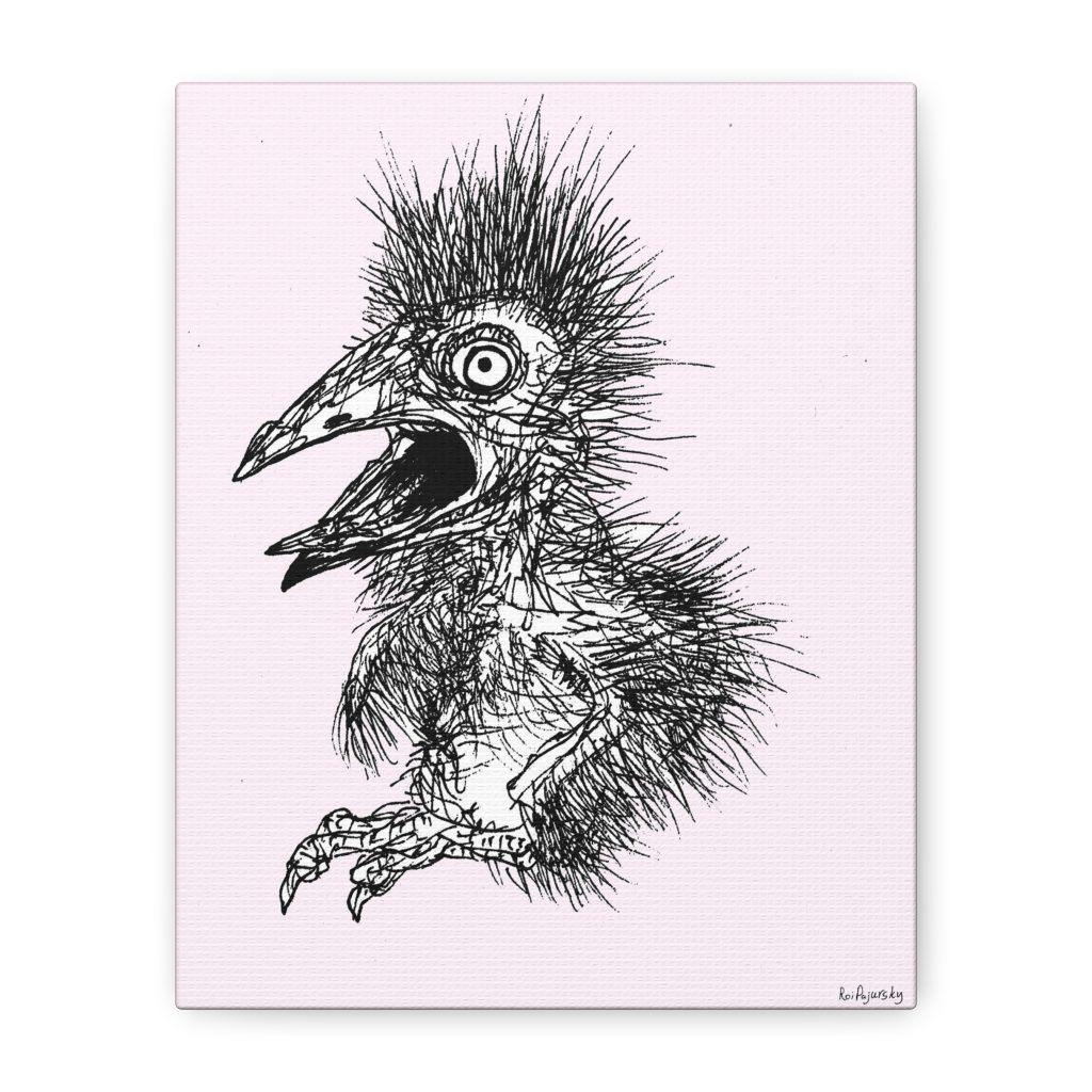 Surreal Goth Bird Art Canvas | Unique Expressionist Creature Sketch | Dark Academia Quirky Wall Art