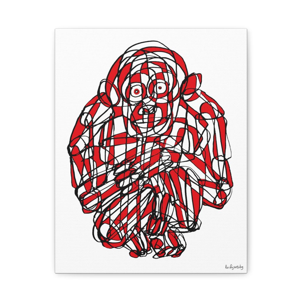 Monkey Red Black Art Line Canvas | Unique Minimalist Illustration by Roi Pajursky | Stretched Matte Wall Art