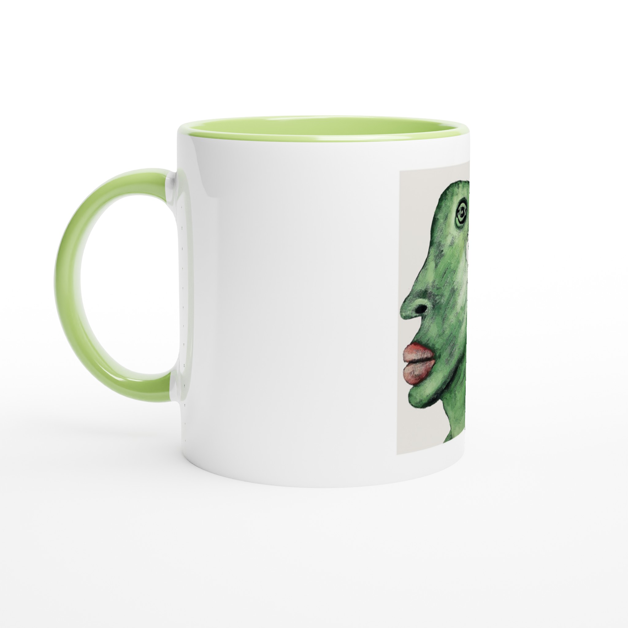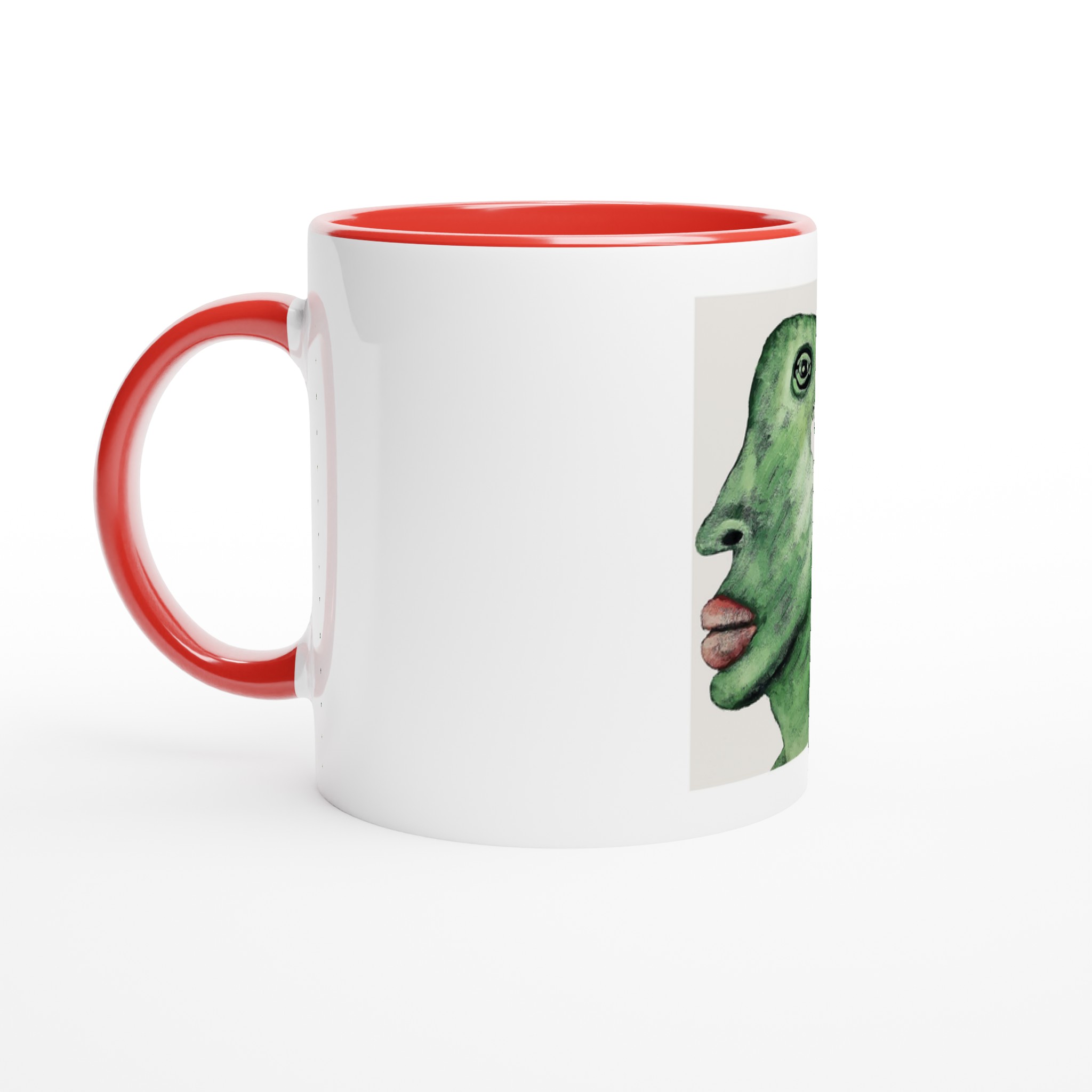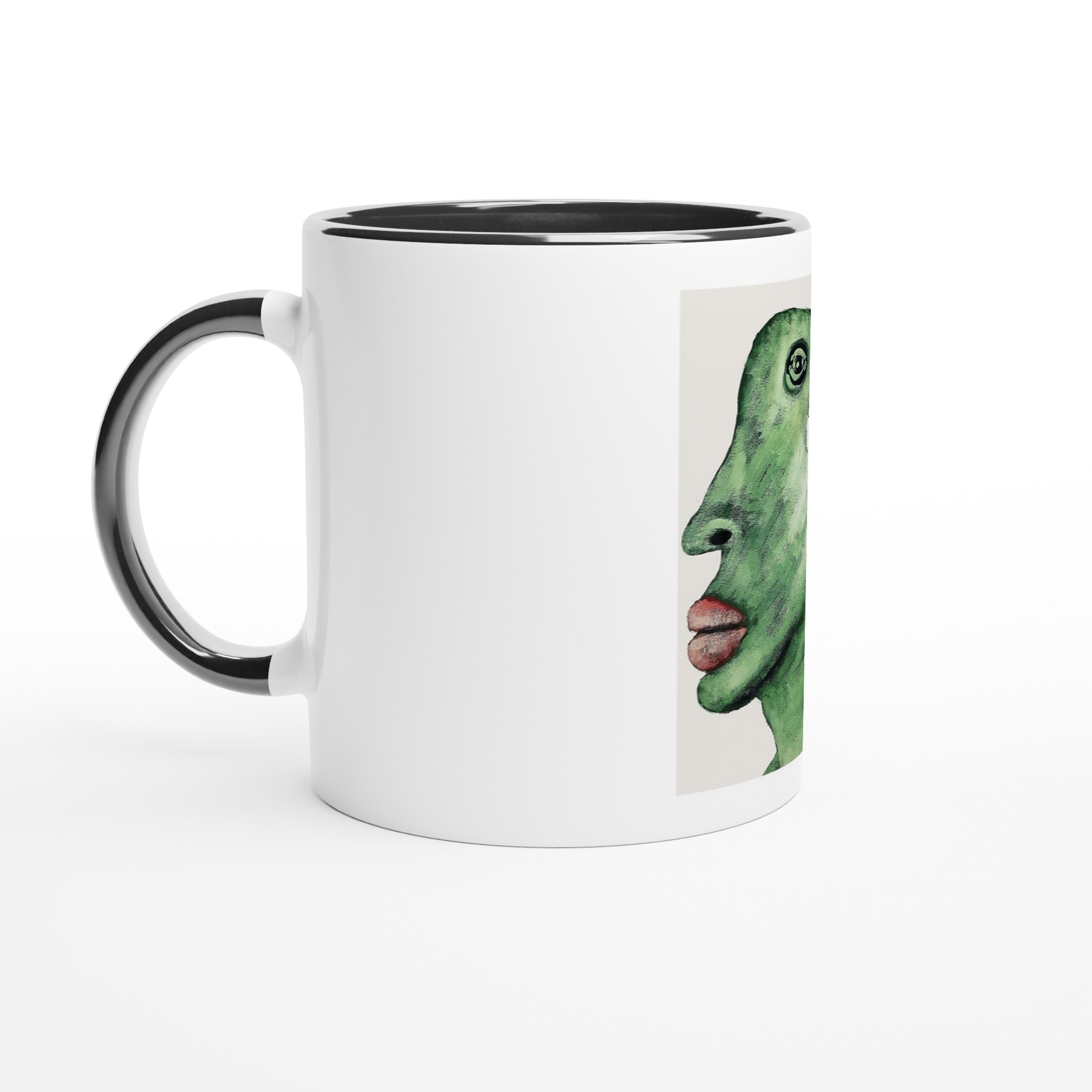 This beautiful ceramic mug is perfect for any event of the day. Your morning coffee, a hot chocolate, or any other hot beverage you enjoy. The mug is glossy white with a colored rim, inside, and handle. The prints come out beautifully and vividly on it. The print retains its quality and luster when used in both microwaves and the dishwasher.