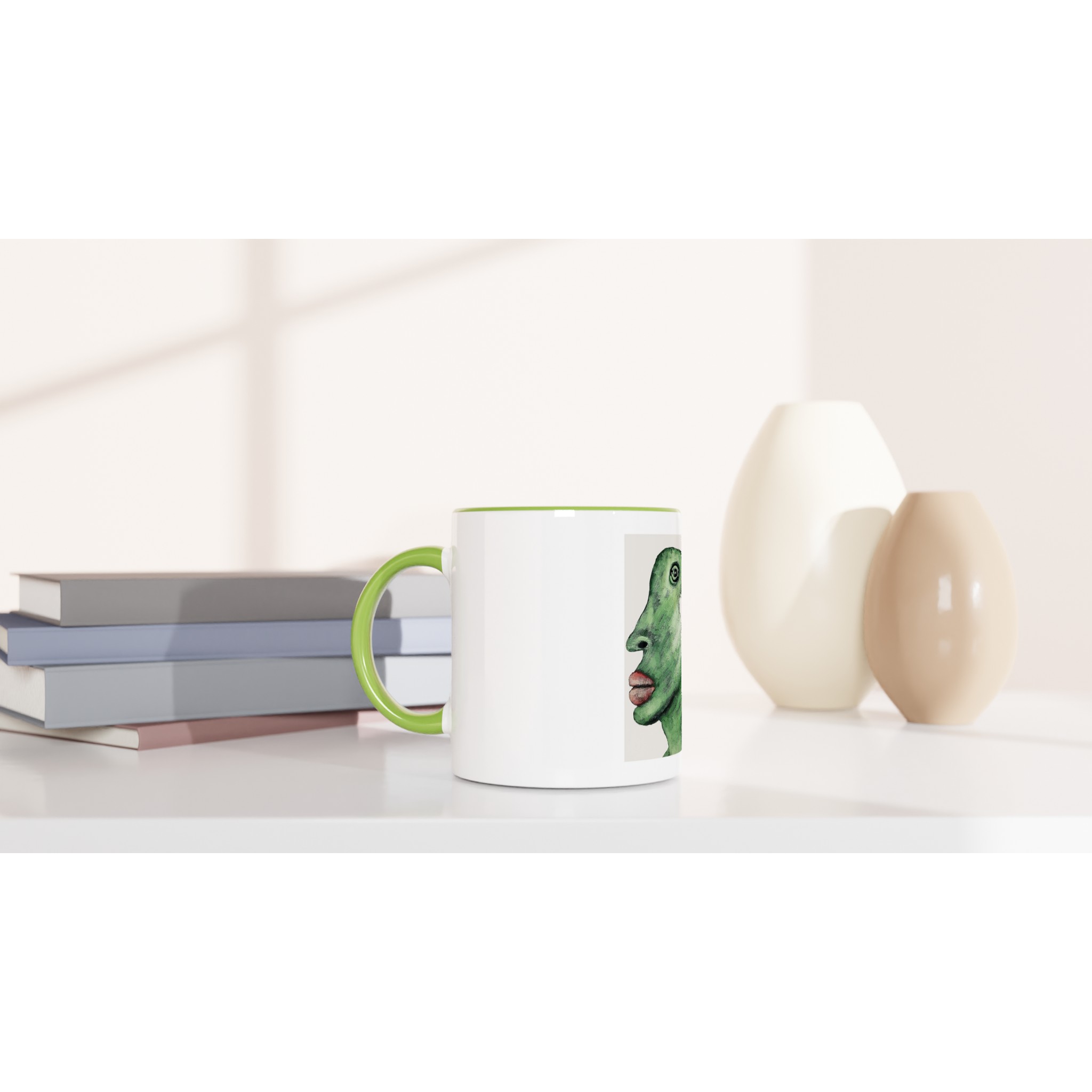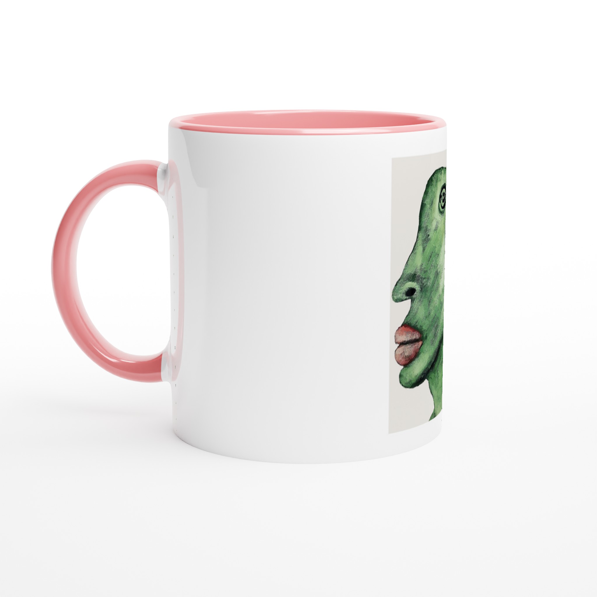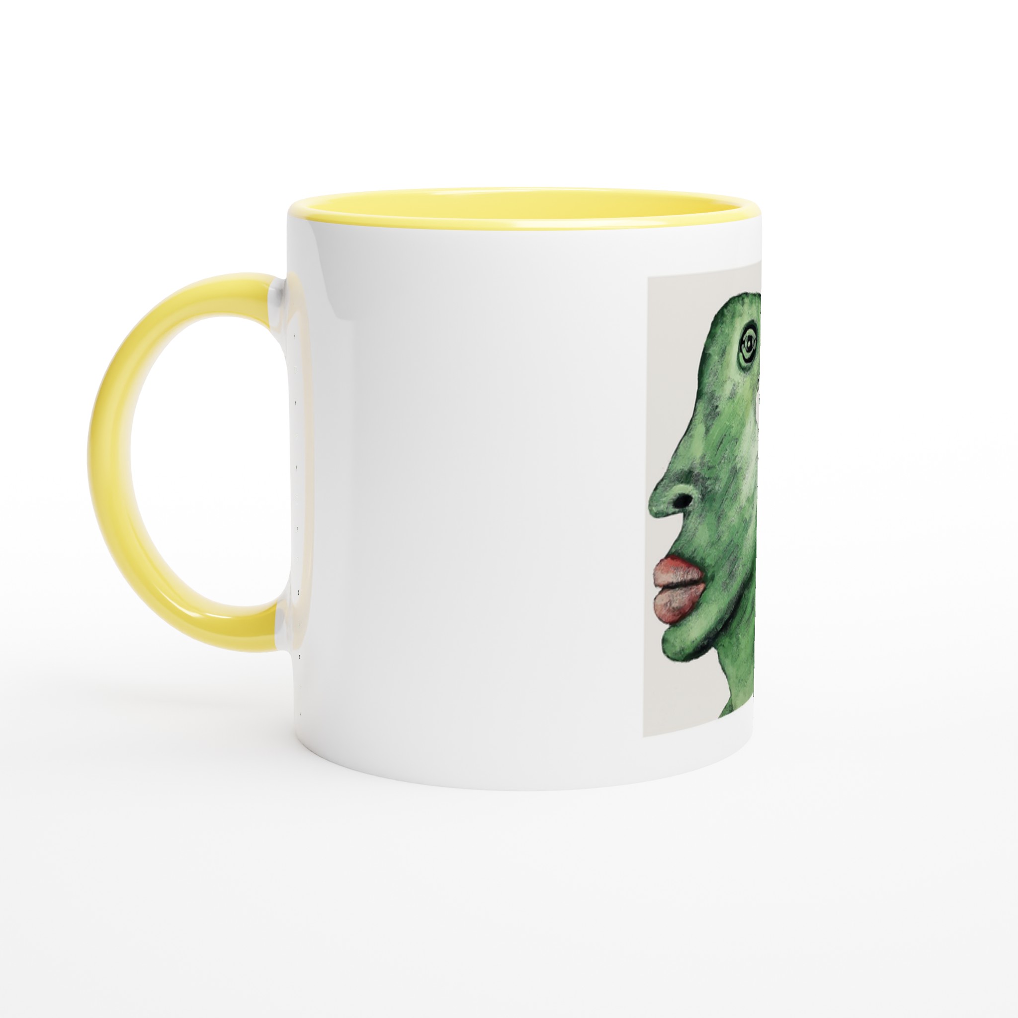 This beautiful ceramic mug is perfect for any event of the day. Your morning coffee, a hot chocolate, or any other hot beverage you enjoy. The mug is glossy white with a colored rim, inside, and handle. The prints come out beautifully and vividly on it. The print retains its quality and luster when used in both microwaves and the dishwasher.
