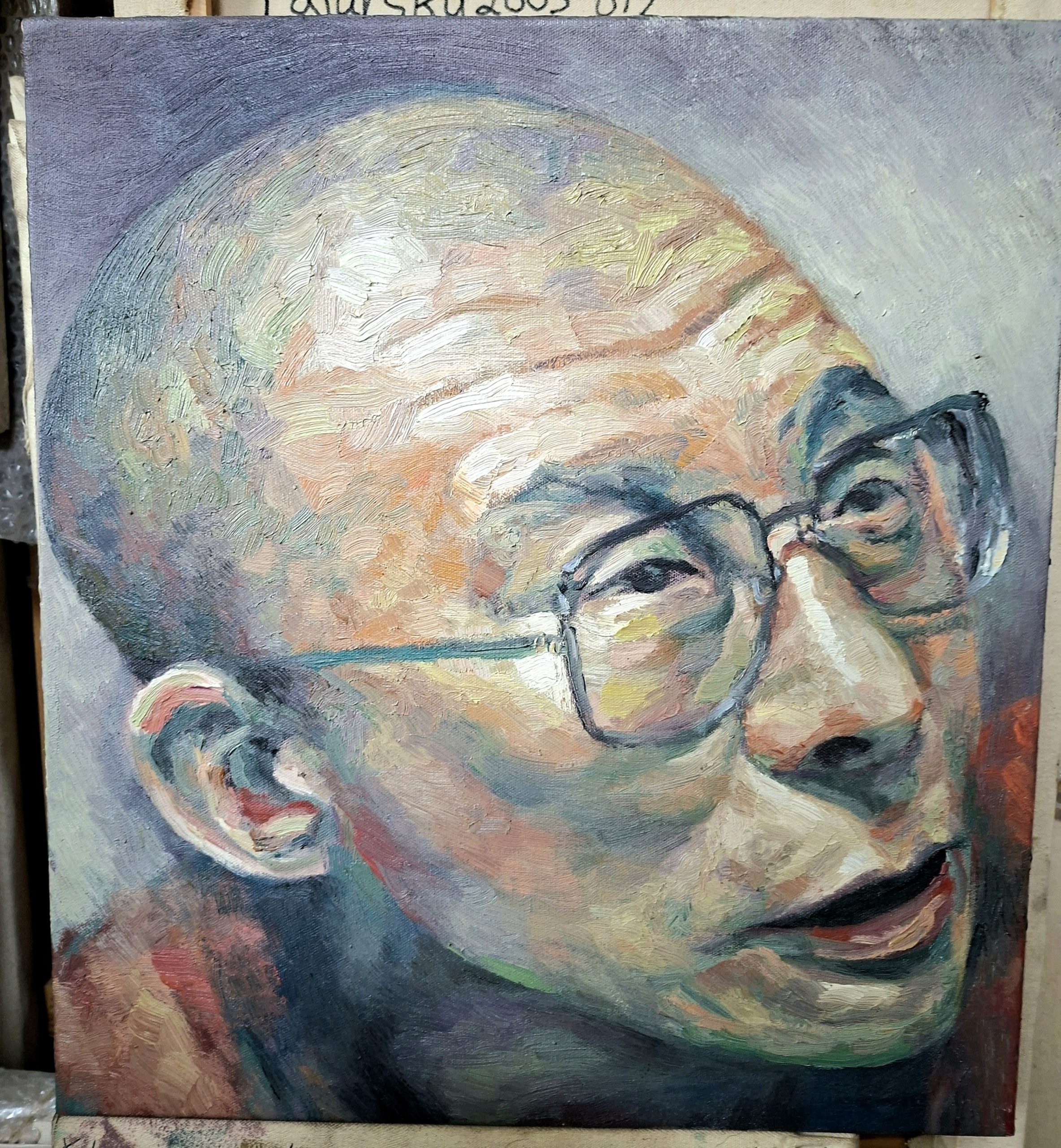 This original oil painting presents an intimate and expressive study of the Dalai Lama.