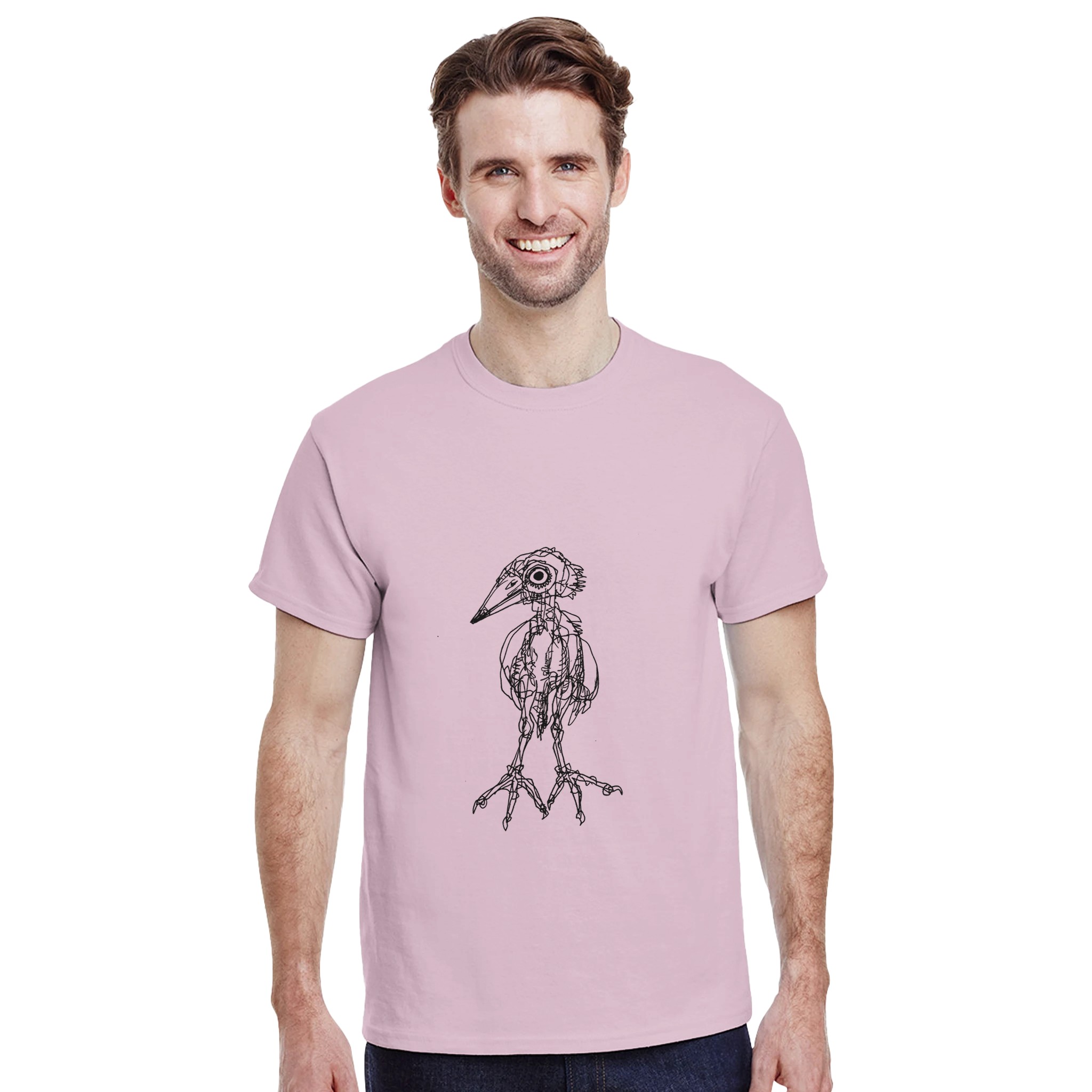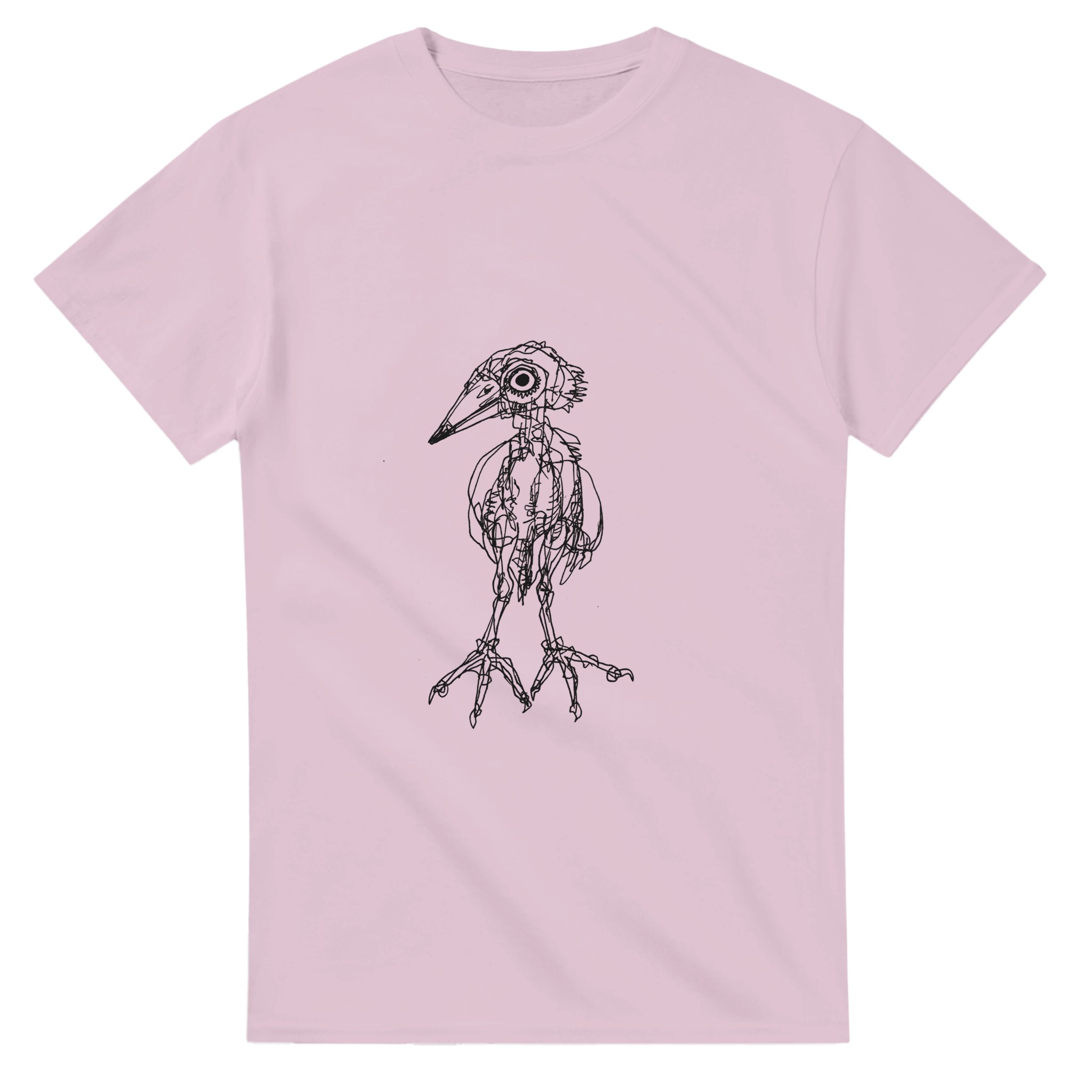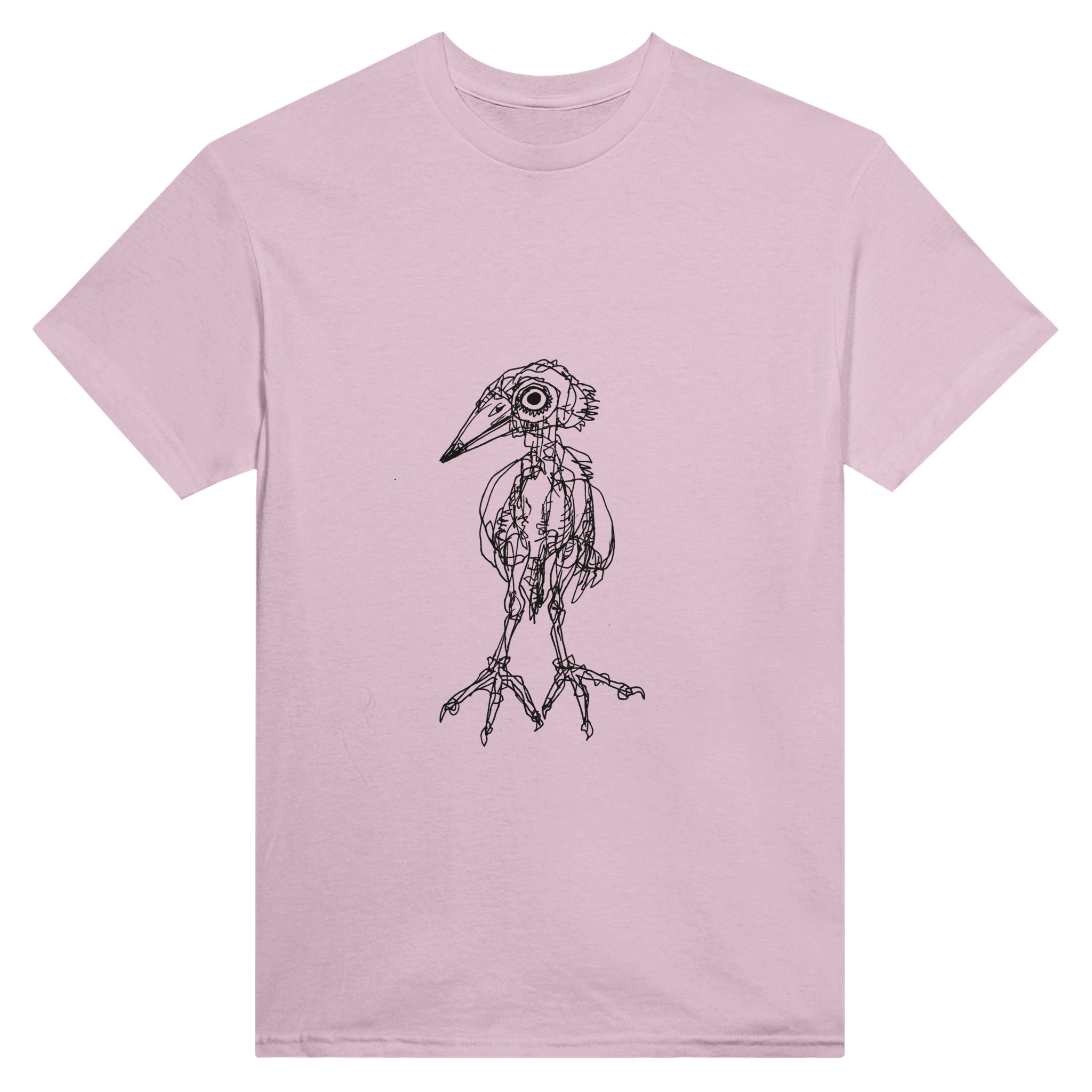 Express your unique style with this original Heron illustration. This premium pink crewneck T-shirt features a detailed, hand-drawn bird anatomy art by Roi Pajursky. Perfect for those who love dark academia, scientific illustration, and artistic streetwear. High-quality print on a soft, comfortable tee.