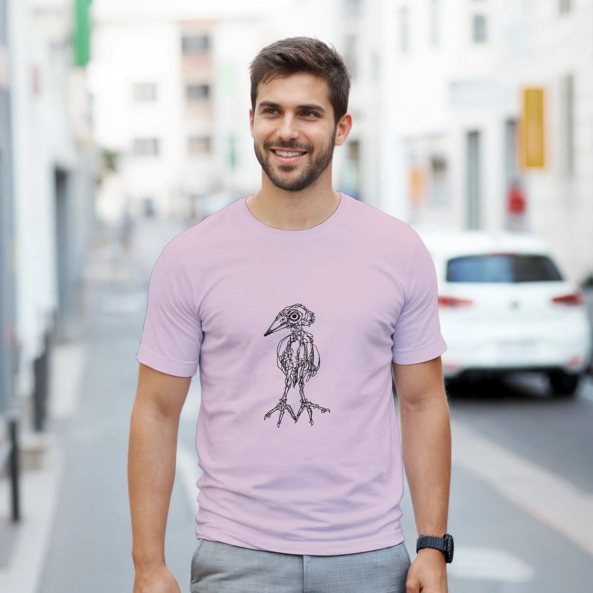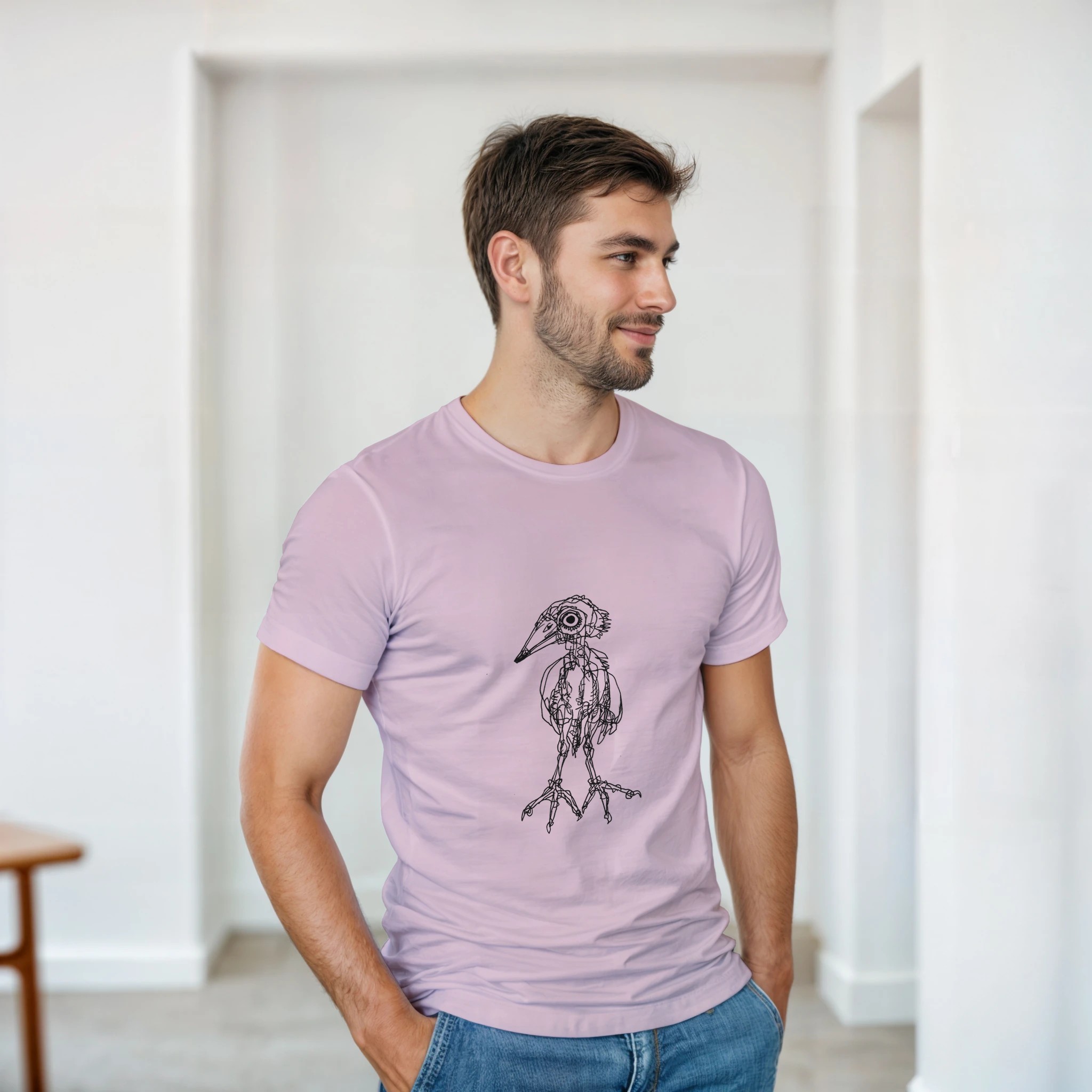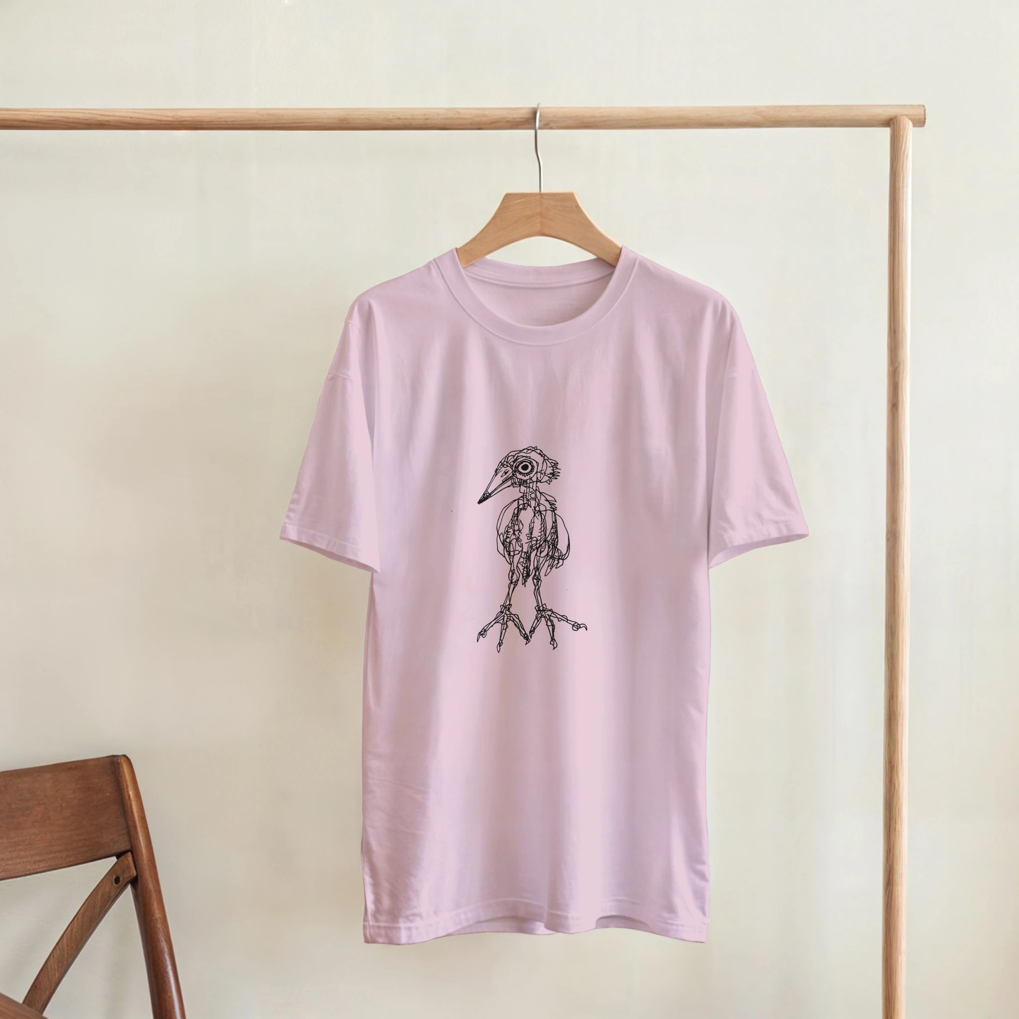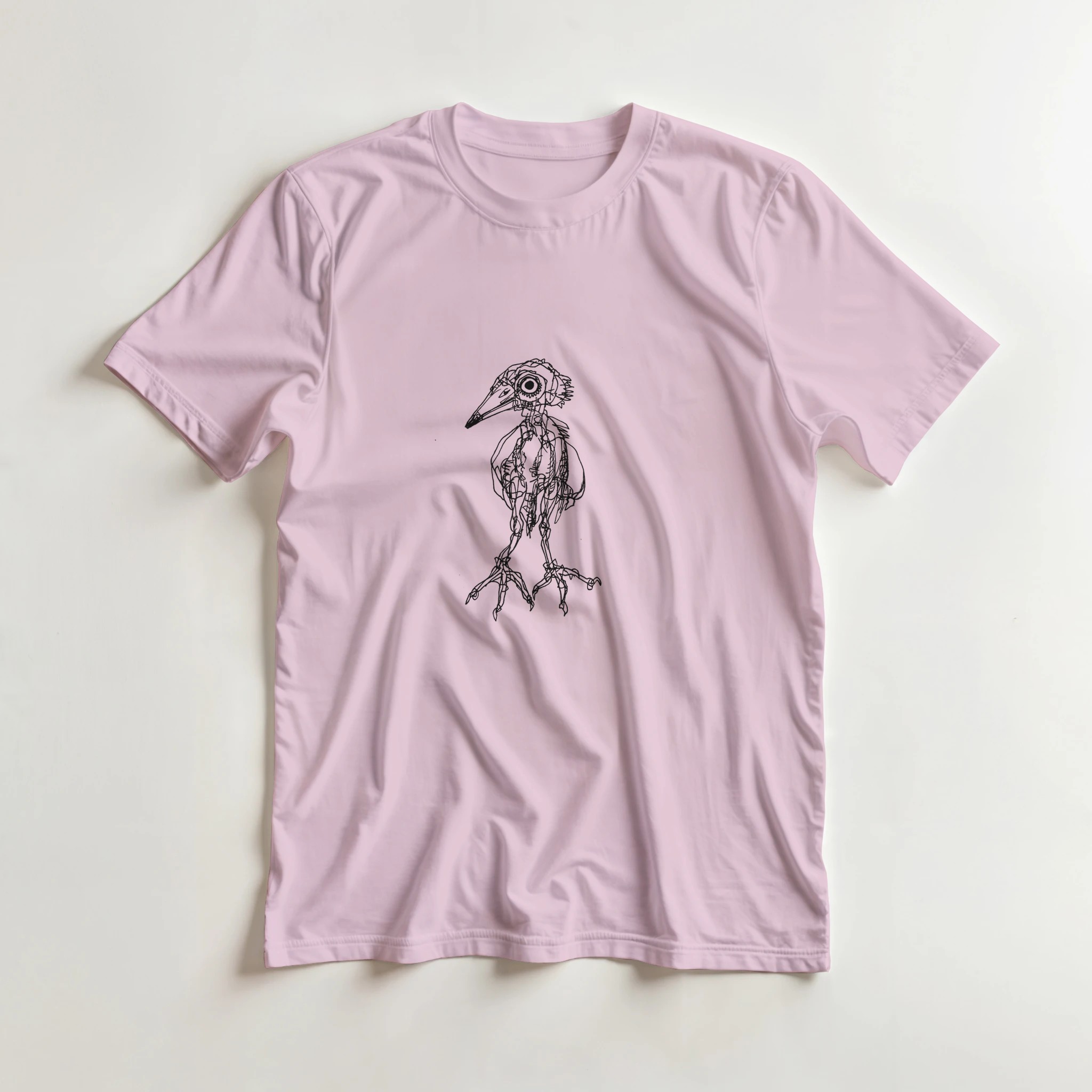 Express your unique style with this original Heron illustration. This premium pink crewneck T-shirt features a detailed, hand-drawn bird anatomy art by Roi Pajursky. Perfect for those who love dark academia, scientific illustration, and artistic streetwear. High-quality print on a soft, comfortable tee.