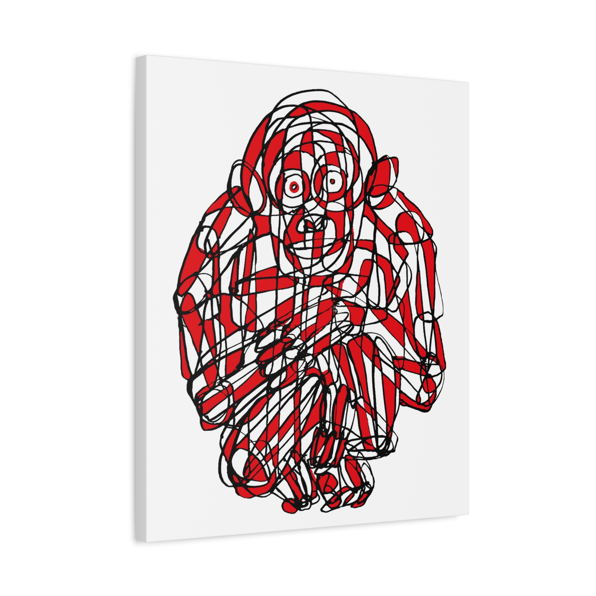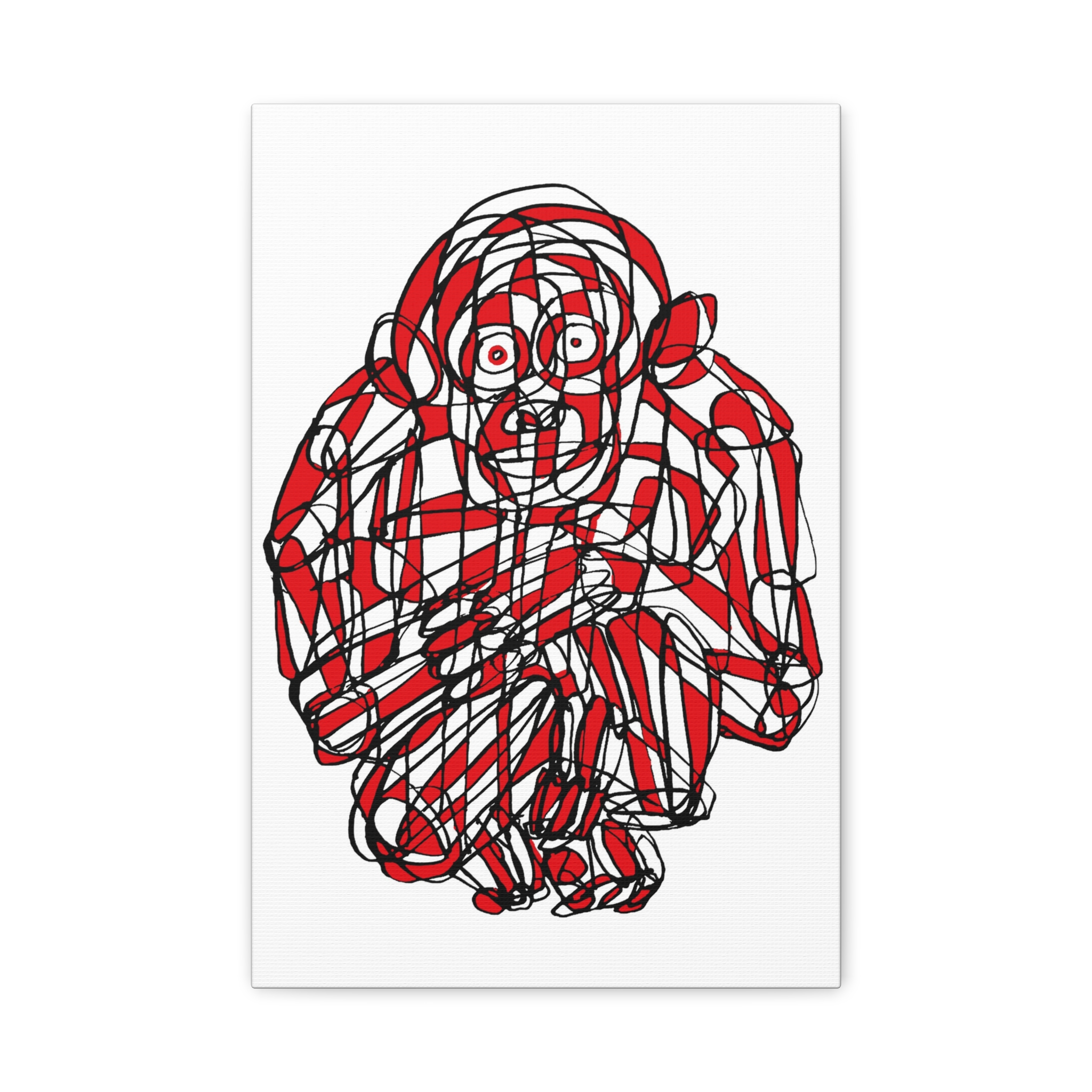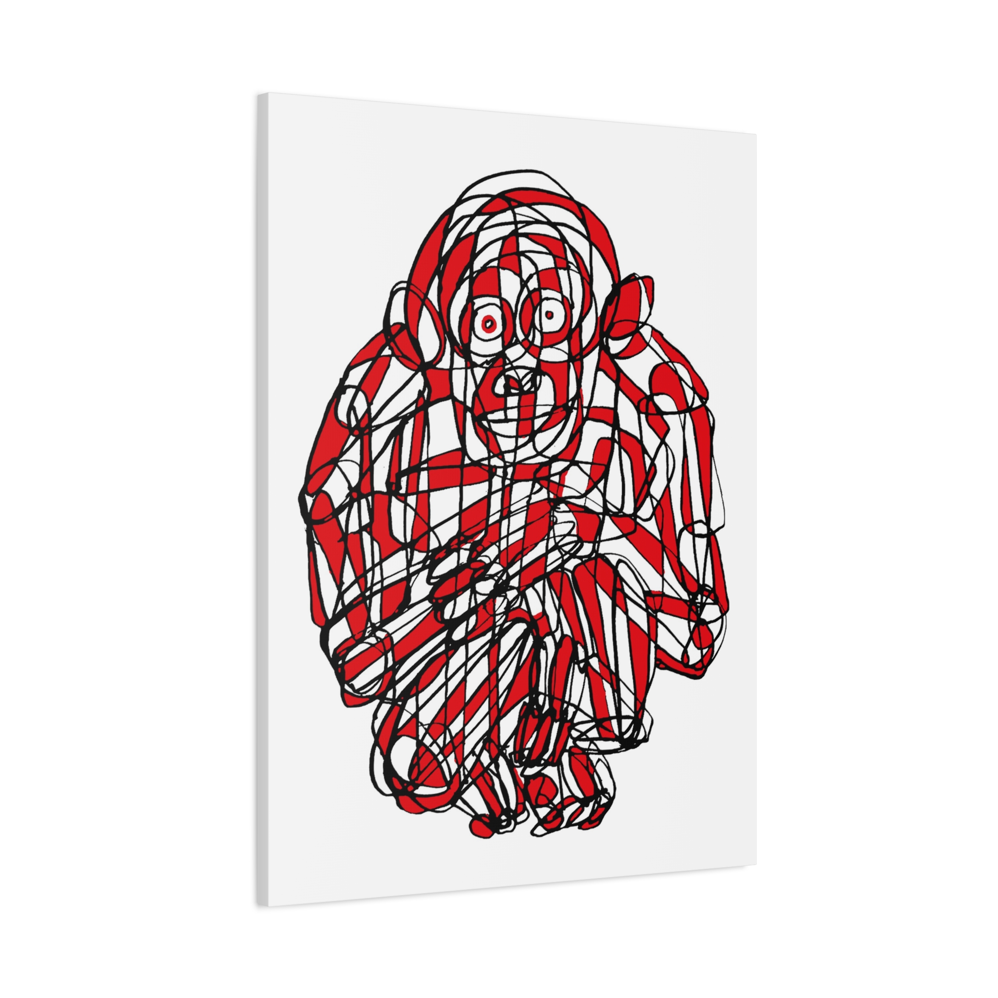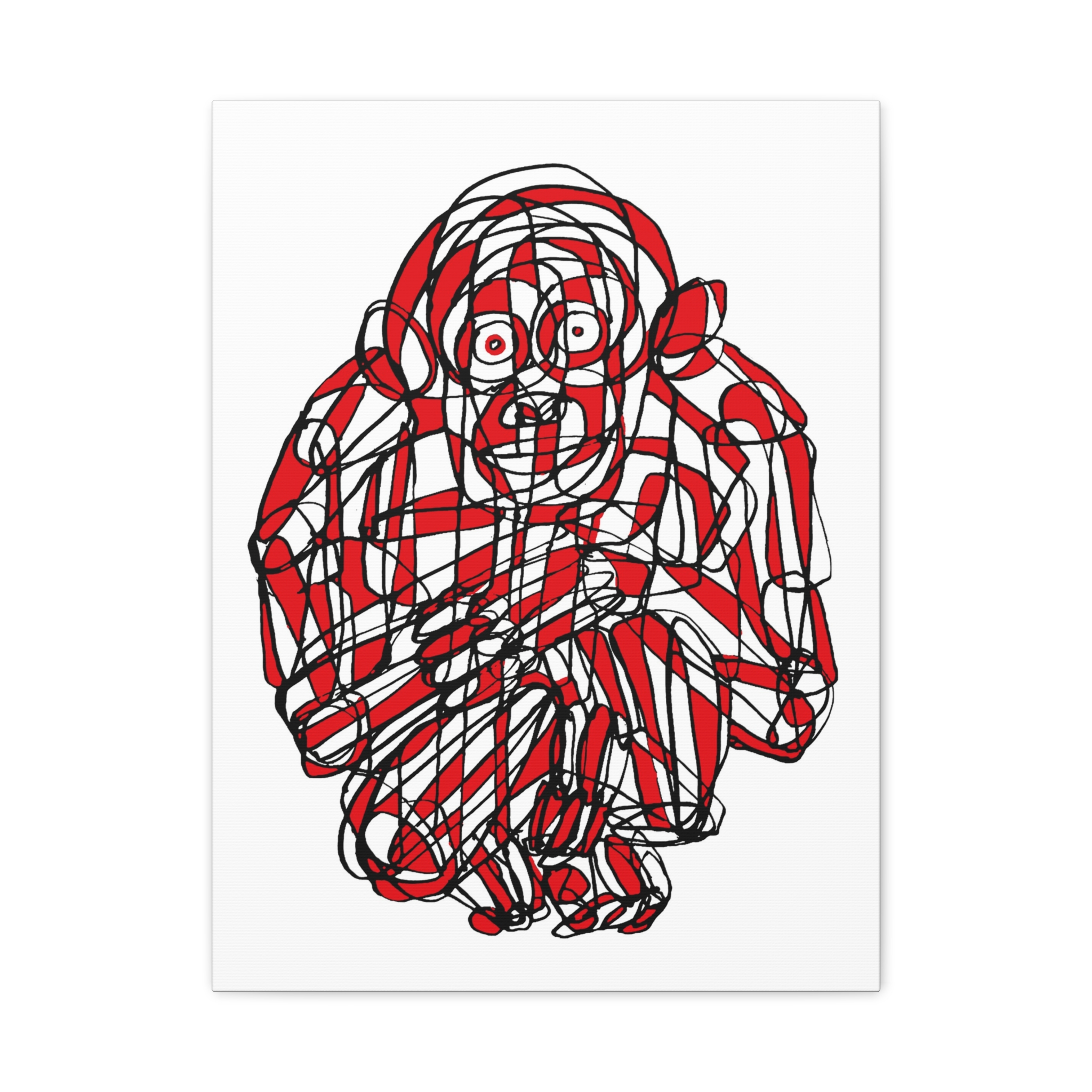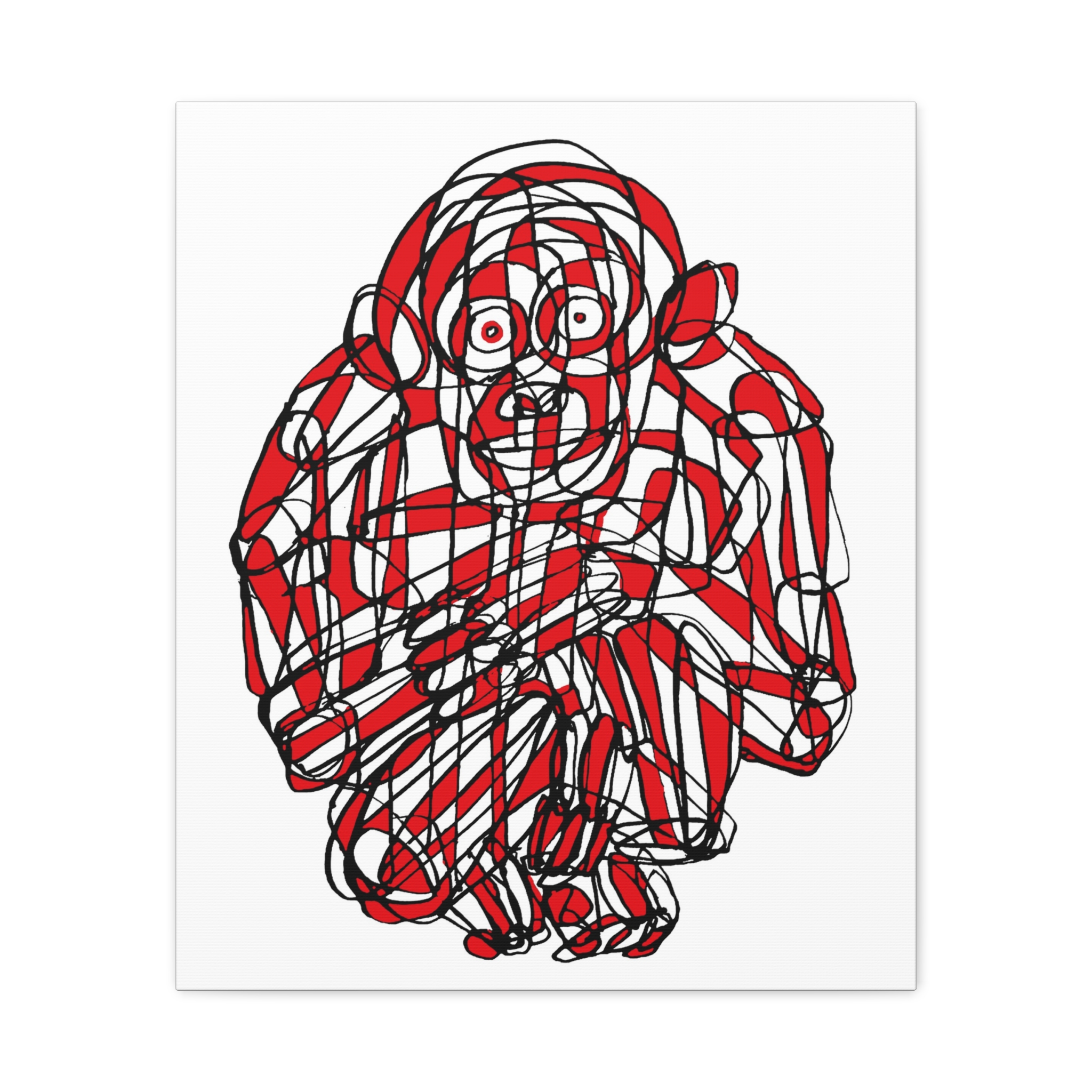 This premium stretched matte canvas showcases the “Monkey Red Black Art Line”—a captivating masterpiece by contemporary artist Roi Pajursky. Featuring a raw, spontaneous energy, this modern abstract illustration uses a sophisticated web of graphic red and black lines to create a bold, expressive primate portrait.