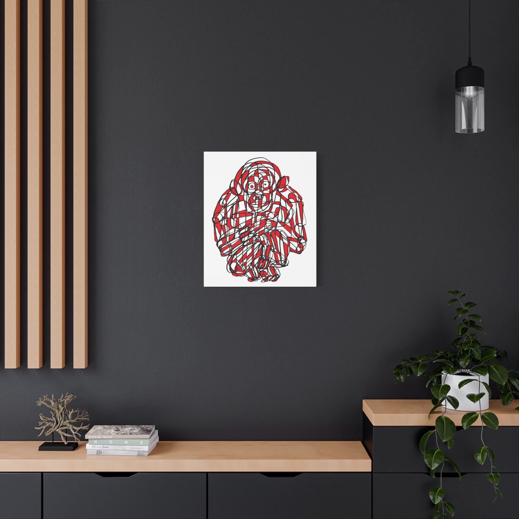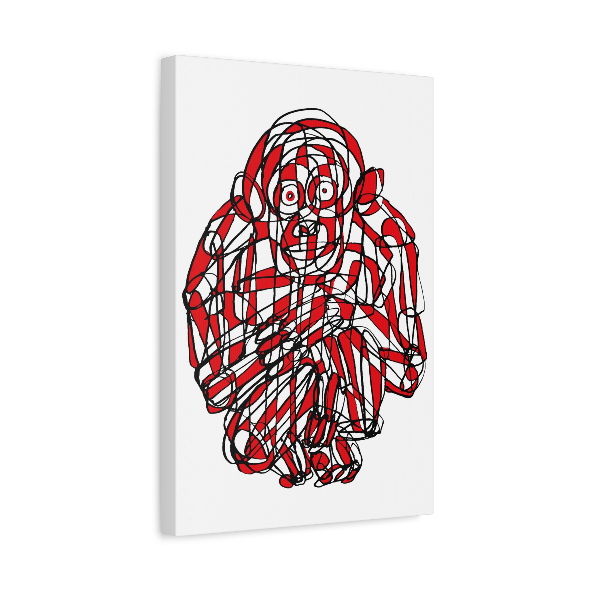 Monkey Red Black Art Line Canvas | Unique Minimalist Illustration by Roi Pajursky | Stretched Matte Wall Art