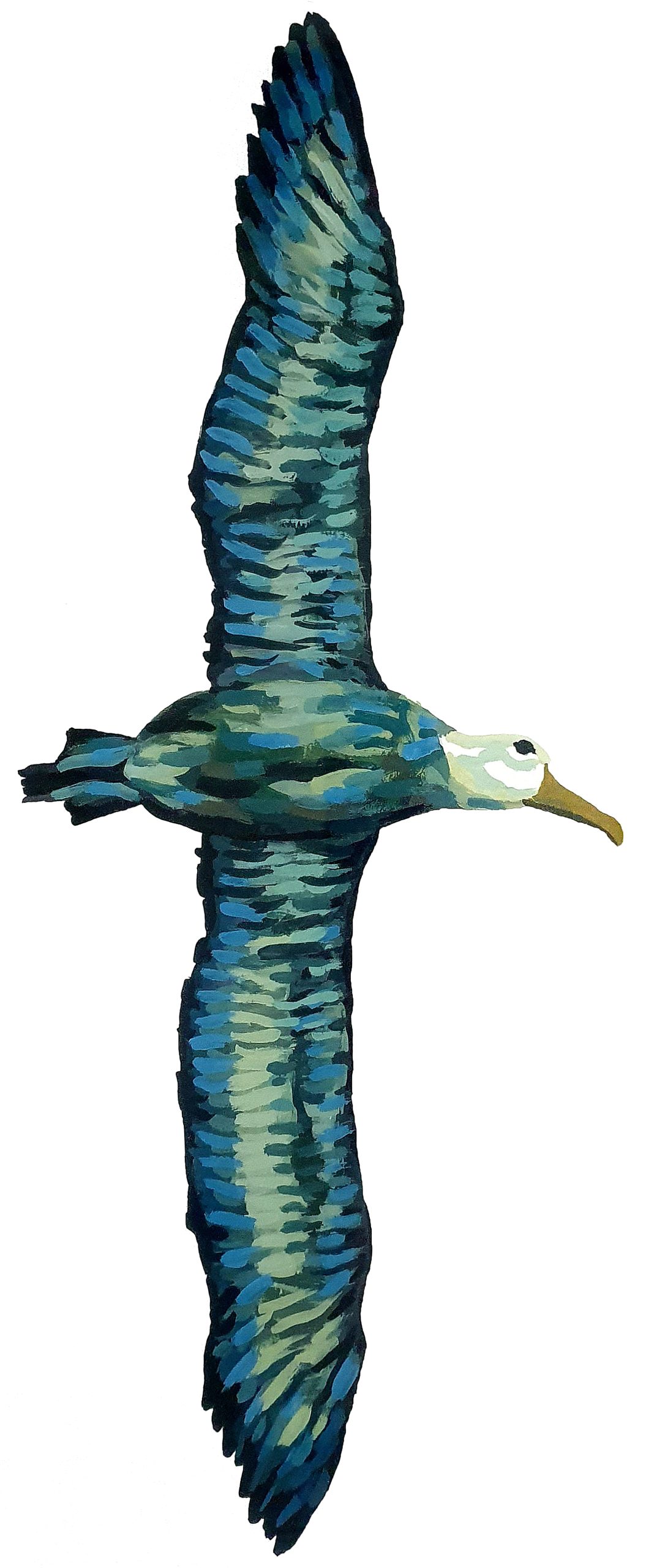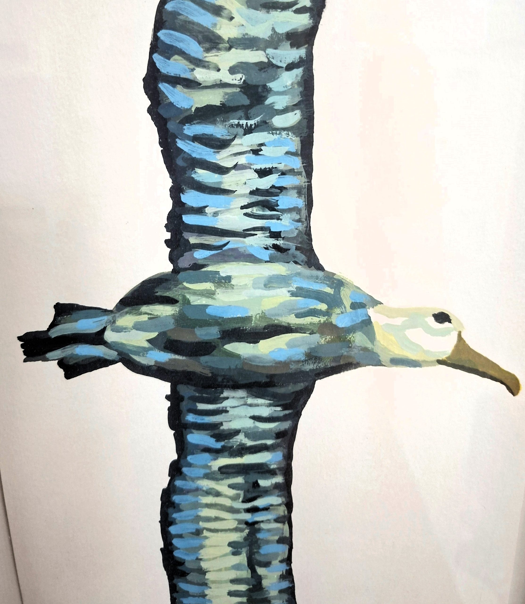 The composition focuses on the elegant, elongated silhouette of an Albatross, viewed from above to emphasize its impressive wingspan and aerodynamic form.