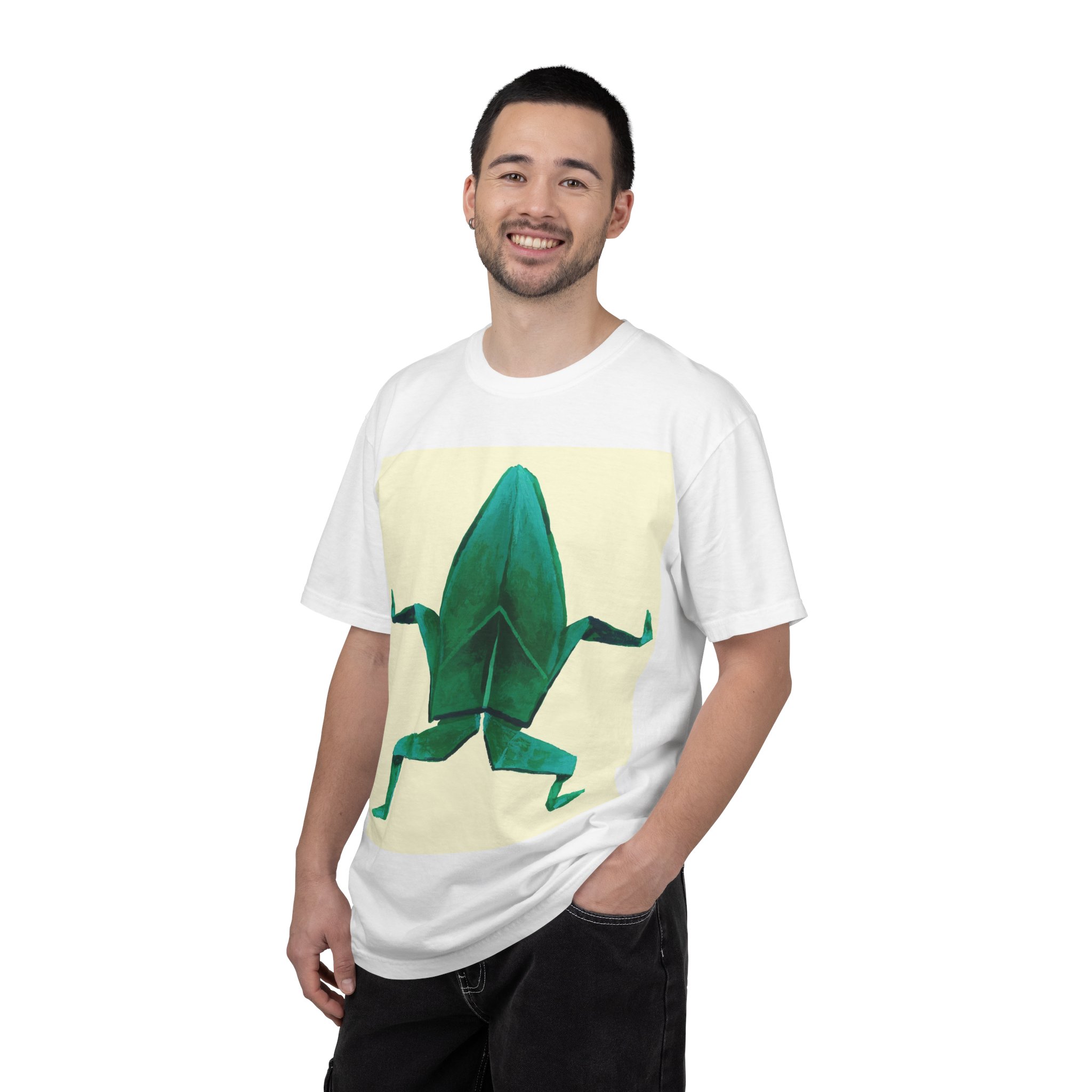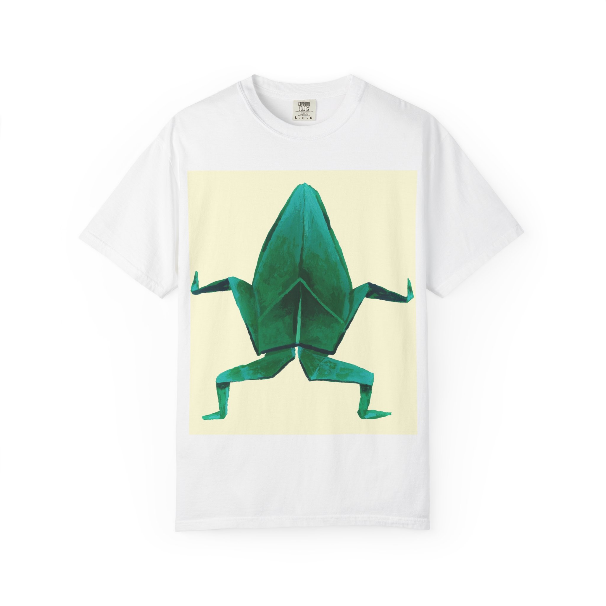 Origami Frog Illustration T-shirt | Green Paper Frog Art
