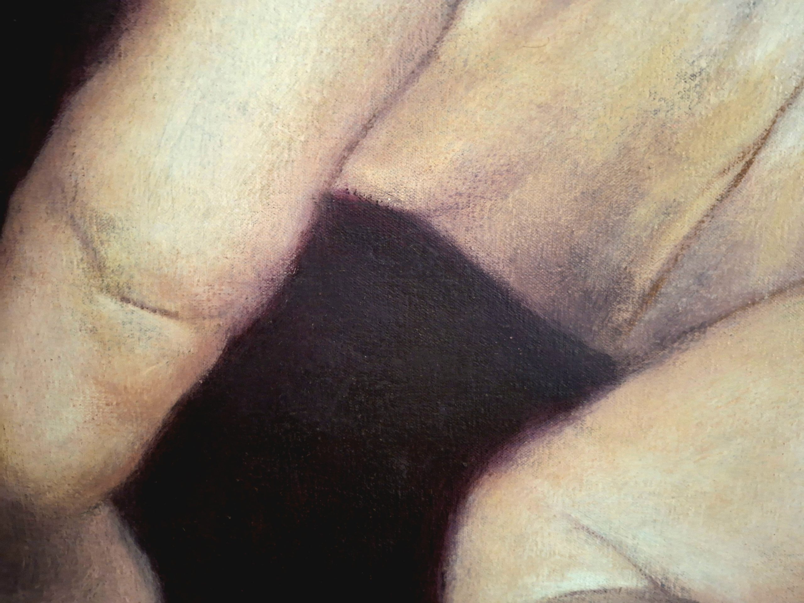 The background is inhabited by ethereal, soft-edged spheres that suggest a cosmic or womb-like space, elevating the portrait from a simple study into a surreal narrative. The use of deep burgundies, warm flesh tones, and subtle shadows creates a powerful sense of depth and quiet wonder. This piece serves as a striking and thought-provoking focal point, blending realistic portraiture with a contemporary surrealist vision.