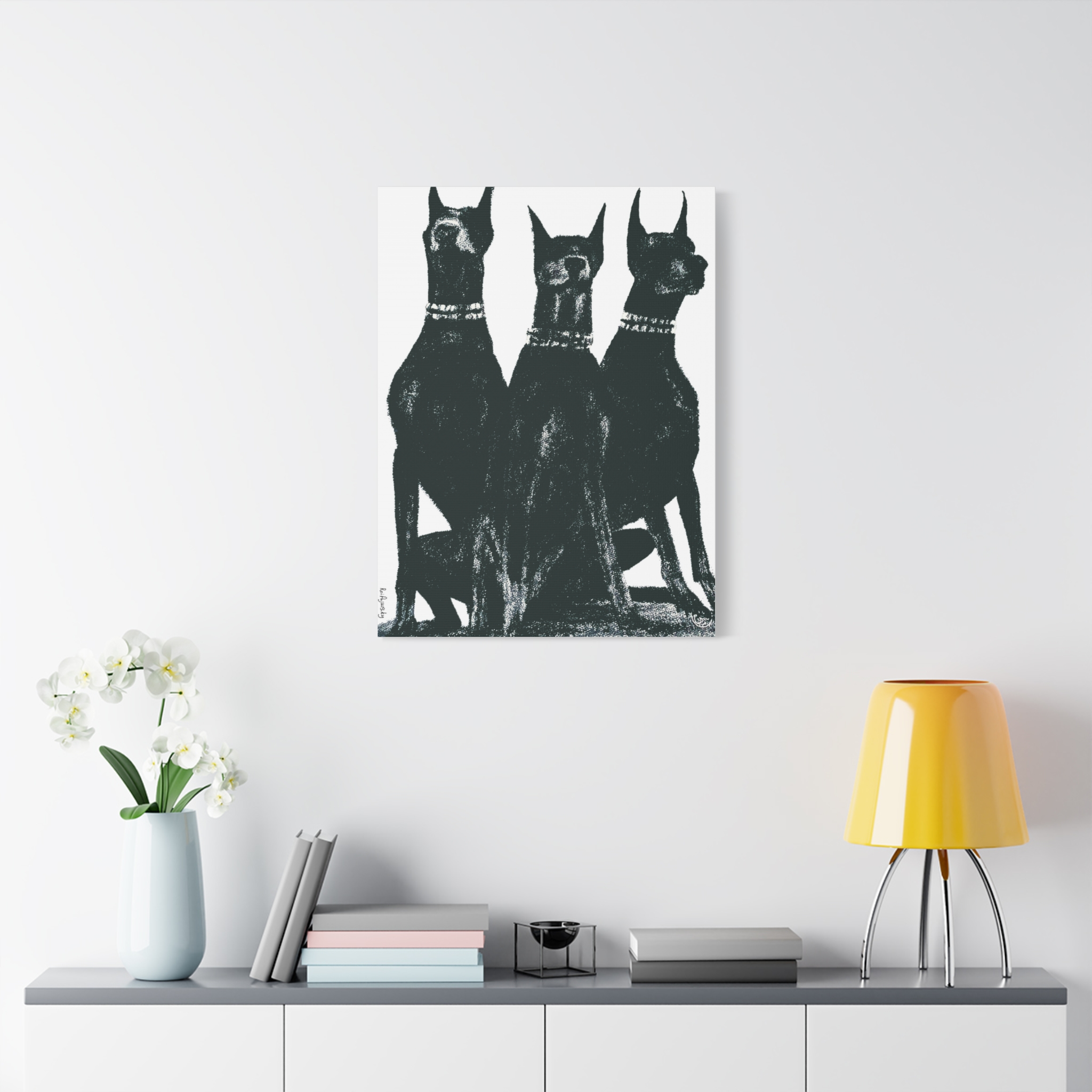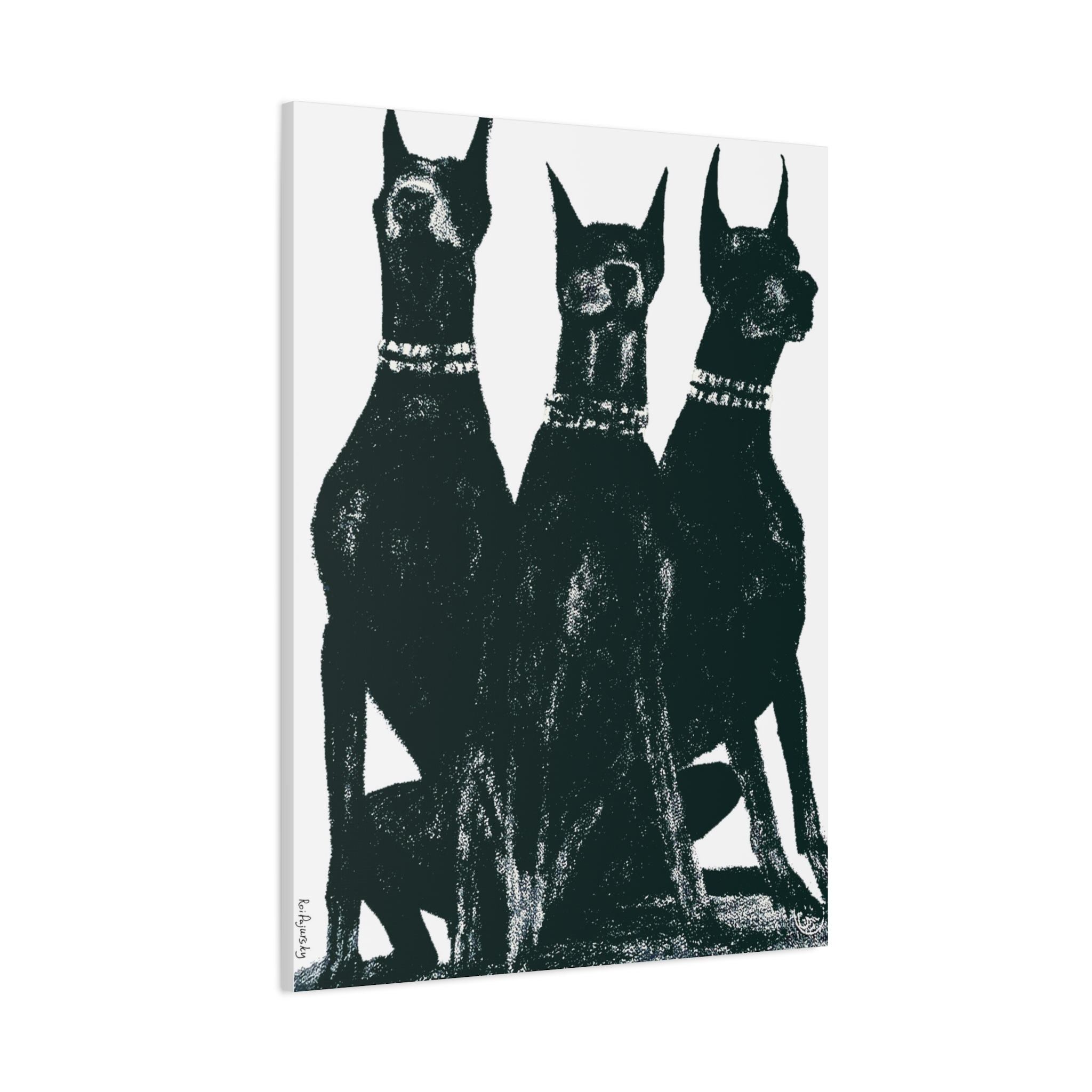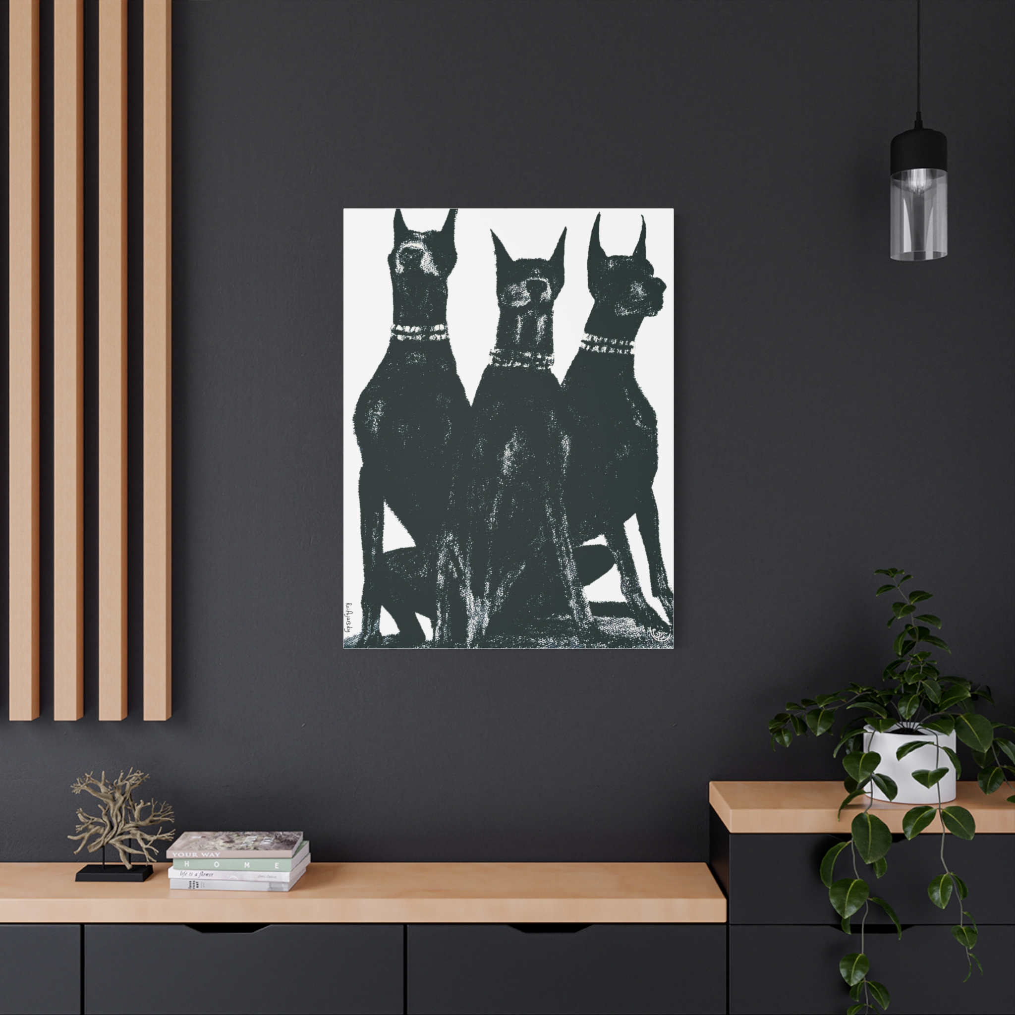 “Emerald Guardians” – A bold trio of Dobermans in a striking oil pastel style.