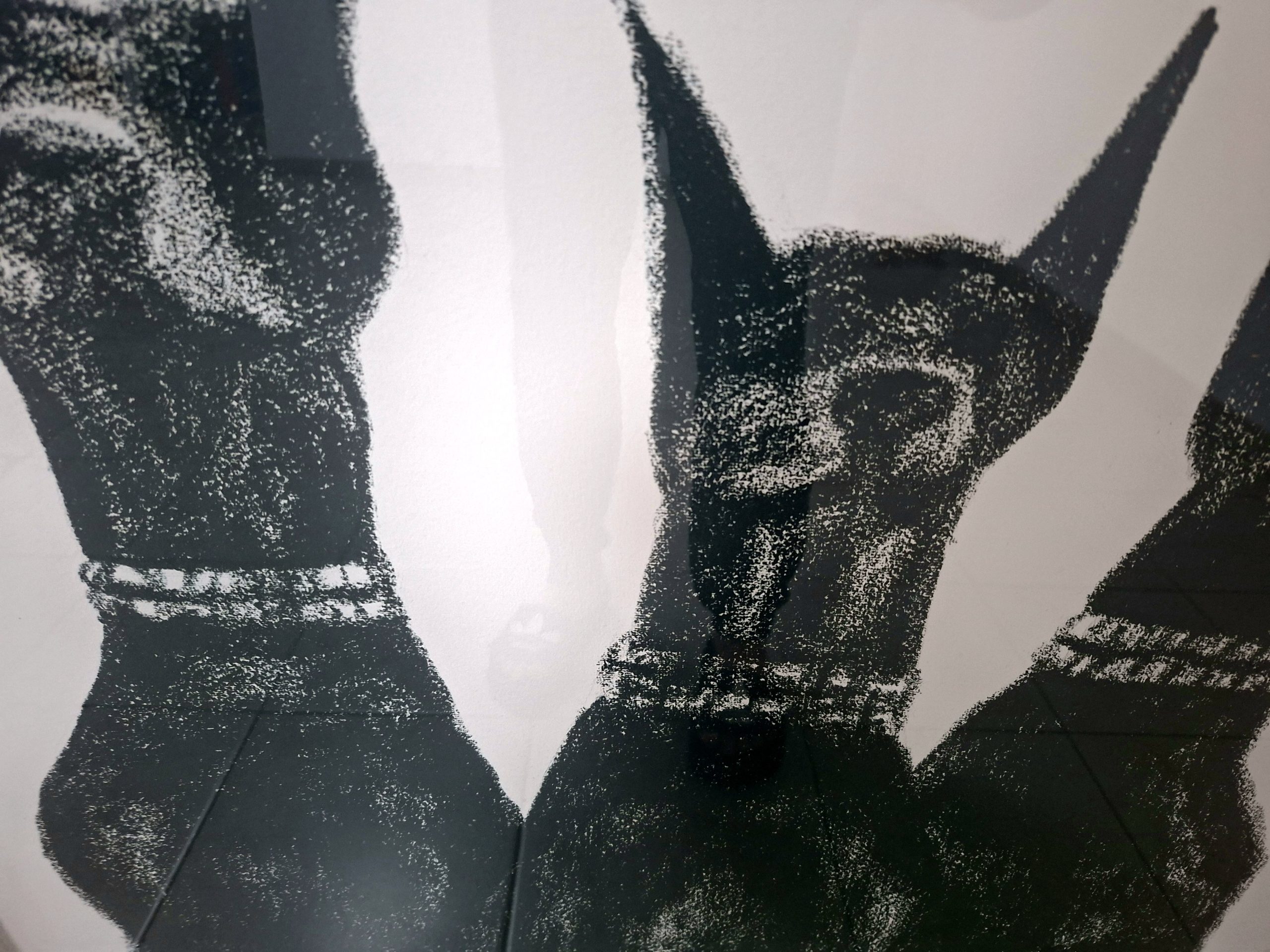 A commanding presence of elegance and strength. This original oil pastel piece features a trio of Dobermans, captured in a striking rhythmic linework style. The deep, saturated textures of the oil pastels bring out a modern, surrealist feel, making it a bold statement piece for any contemporary space. Professionally framed in a sleek white frame, ready to hang.