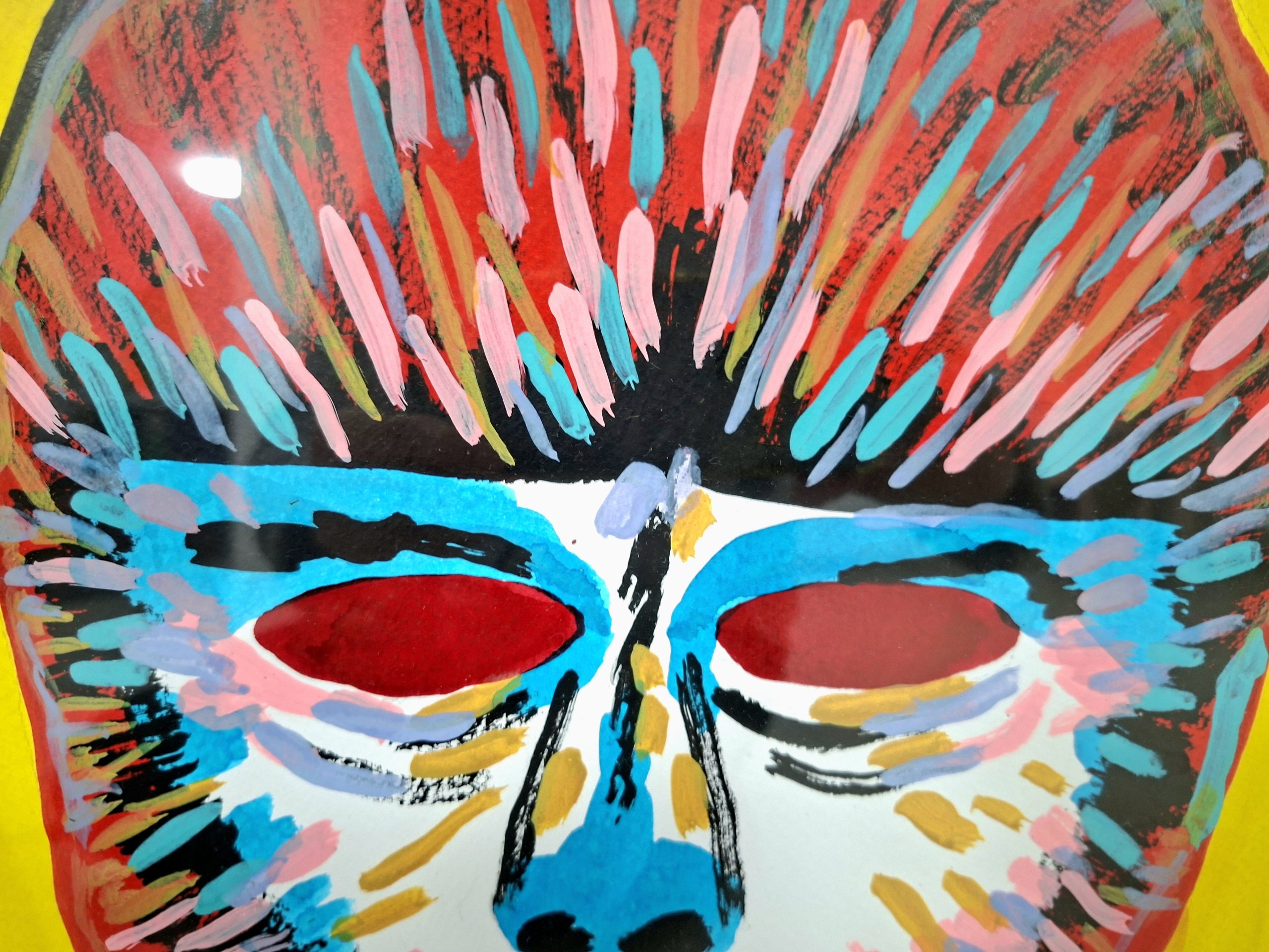 This original ink-on-paper piece captures a striking, surreal mask design.