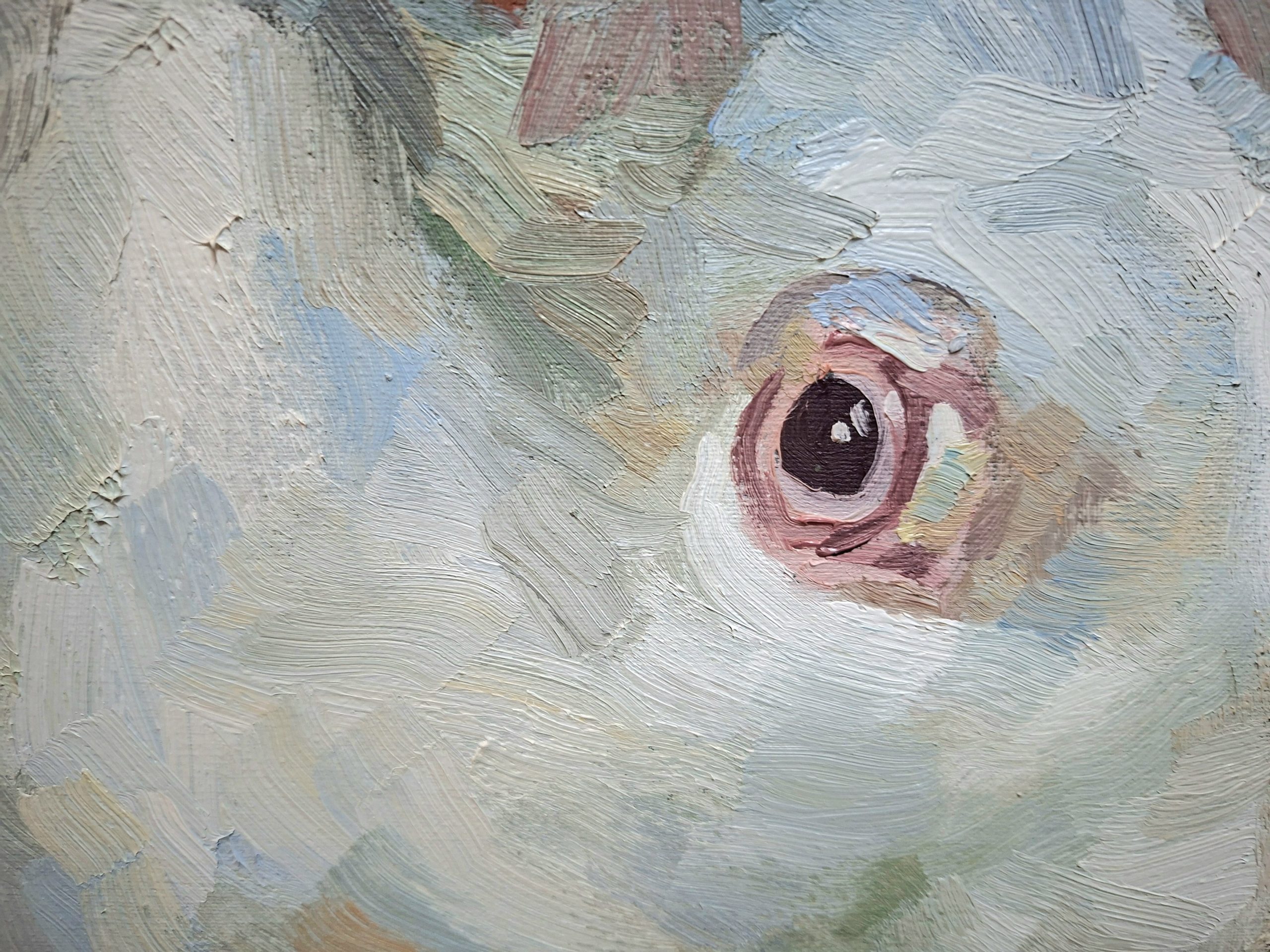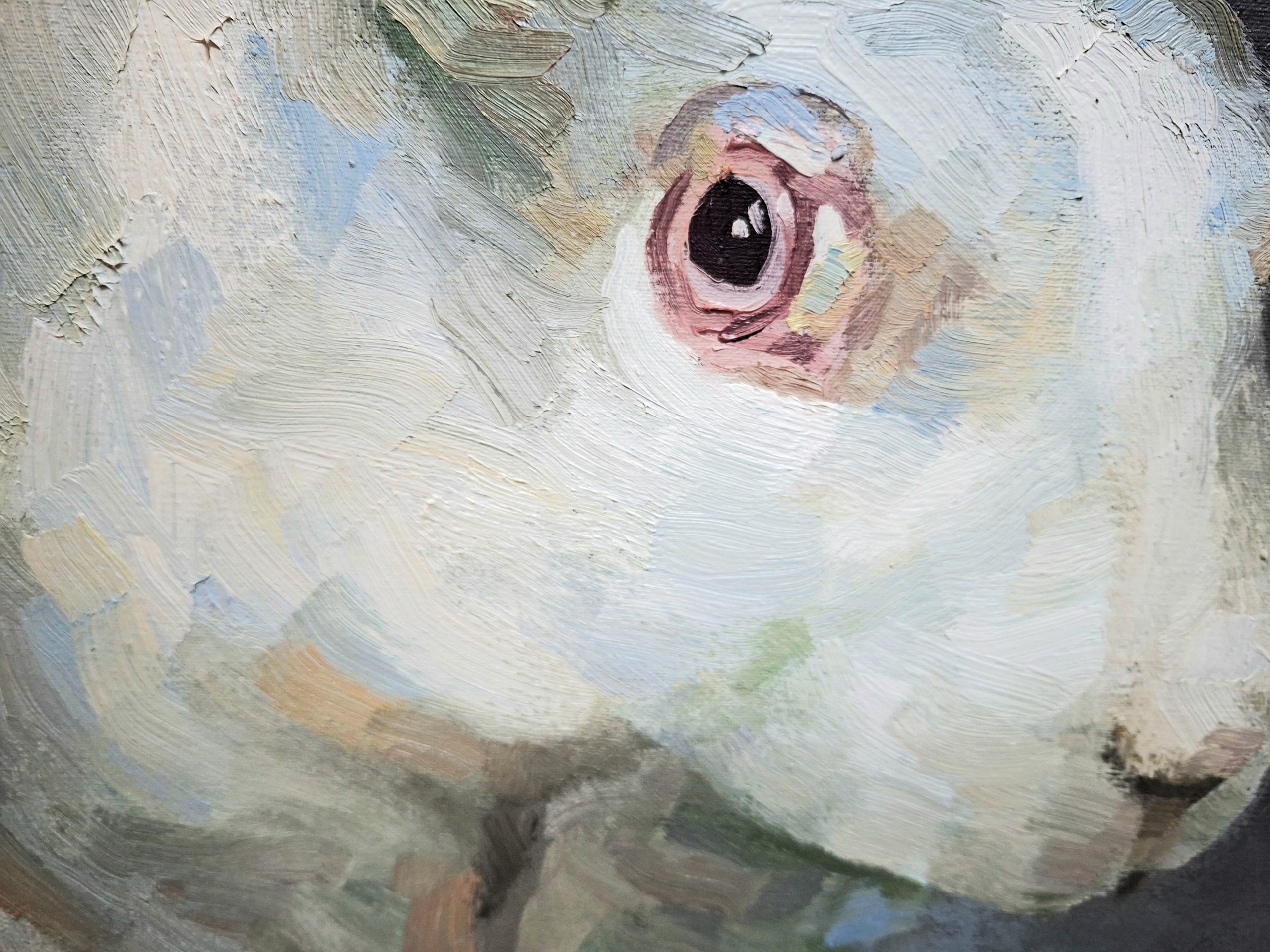In this original oil painting, I explores the delicate nature of the rabbit through a lens of bold expressionism.